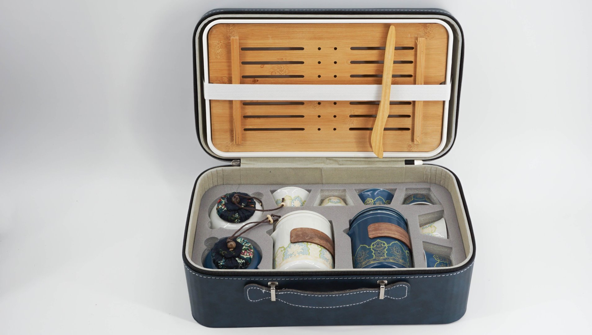 Делюсь впечатлениями от набора для чайной церемонии: на 6 персон и с необходимыми аксессуарами внутри. Комплект поставляется в небольшом чемодане для хранения, а это дает возможность использовать его для чаепития на природе. Взять такой набора для чайной церемонии на пикник на открытом воздухе или захватить на дачу не составит труда.
