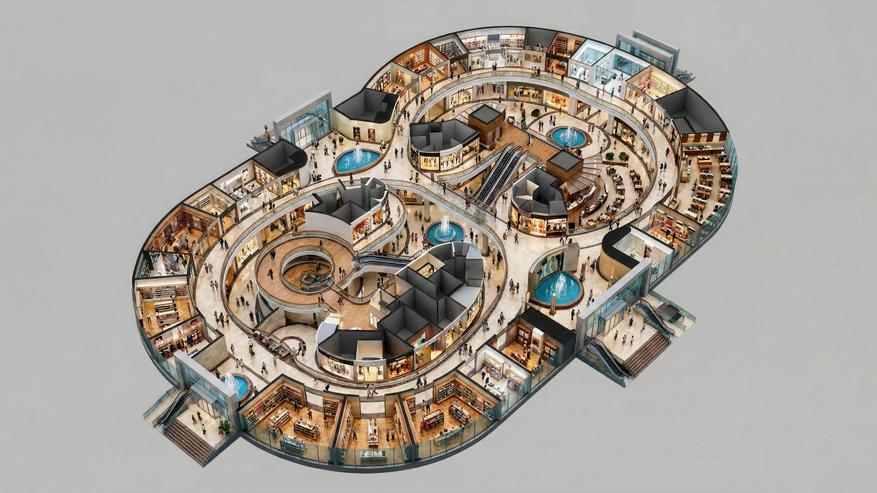 Планировка современного торгового центра — настоящий триумф психологии потребления. Как и в казино, вы не встретите большого количества прямых углов или логичного расположения магазинов. Архитектура намеренно усложняется: изогнутые коридоры вместо прямых, неочевидные повороты, зеркала, создающие иллюзию большего пространства. Каждый изгиб коридора, каждый неожиданный поворот галереи создан с единственной целью — заставить посетителя пройти мимо максимального количества витрин.