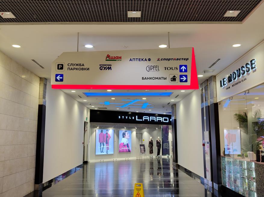 Крупные «якорные» арендаторы — продуктовые гипермаркеты и магазины бытовой техники — никогда не располагаются рядом. Они стратегически разнесены по разным этажам и противоположным концам здания. Чтобы добраться от одного до другого, посетителю приходится проходить через длинные галереи с десятками мелких магазинов.