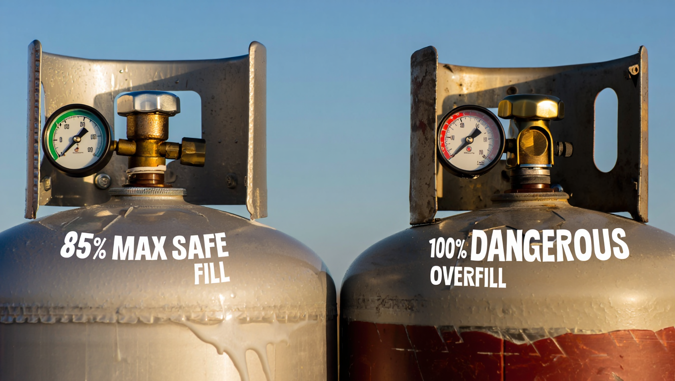 Главное правило: 85% - максимум! Именно поэтому существует золотой стандарт безопасности: заполнять баллон не более чем на 85% от его полного объема. Эти 15% свободного места — та самая «паровая подушка», жизненно необходимая для компенсации расширения газа. Это не чья-то прихоть, это закон физики, игнорирование которого смертельно опасно.