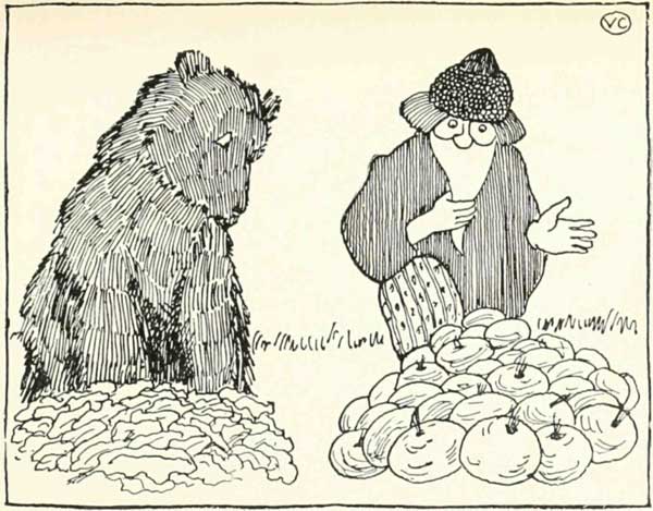 Медведь стал персонажем, потому что был «почти человек»: ходил на задних лапах, ел мёд, мог залезть в амбар. Его можно было назвать Мишей, потешить или победить хитростью.