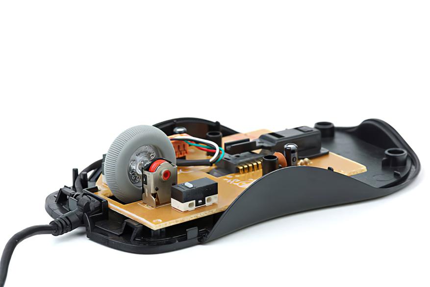 - После разбора нужно аккуратно отсоединить плату с колесиком от остальных элементов корпуса. На этом этапе будьте предельно осторожны и запоминайте весь алгоритм действий, так как навороченные модели мышек могут иметь внутри кучу отсоединенных частей, которые могут посыпаться при разборе. Лучше вовсе сфотографировать все с разных ракурсов или записывать весь процесс на видео;