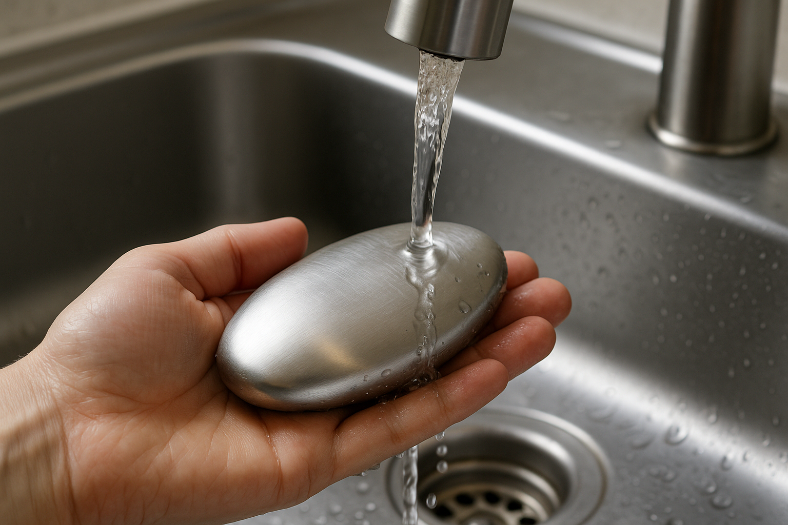 Возможно, на просторах интернета, или в магазине вы встречали металлическое мыло. Оно выглядит как загадочный предмет, и сначала непонятно, для чего оно нужно. Этот небольшой кусок блестящего металла, похожий на кусочек нержавейки, обещает удалить любые запахи с рук: рыбы, чеснока, лука, бензина, краски и пота. Казалось бы, чудо из области химии, но действительно ли оно работает? Разберёмся, что скрывается за этим изобретением и как оно действует на самом деле.