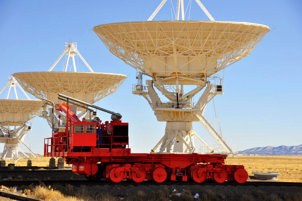 На огромных равнинах Нью-Мексико, среди пустынных пейзажей, расположился один из самых выдающихся радиотелескопов в мире под названием Very Large Array (VLA). Это огромная система из 27 антенн, которая работает как единый инструмент для изучения Вселенной. Но это далеко не самое удивительное, антенны радиотелескопа установлены не стационарно, и при необходимости их расположение может меняться. Это необходимо для решения разных задач исследования космоса. Для этого используется специальная железнодорожная система и уникальные дрезины, которые могут перевозить огромные антенны телескопа.
