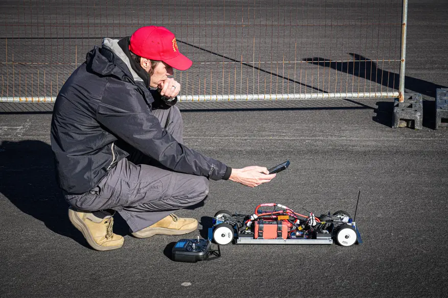 Уоллис применил нестандартный подход к конструкции. Вместо традиционной трансмиссии и механического рулевого управления он использовал принцип квадрокоптера. Четыре мощных двигателя установлены непосредственно на колёсах без промежуточных механизмов. Повороты осуществляются за счёт изменения скорости вращения отдельных двигателей. Система управления полётом дрона со встроенными акселерометрами и гироскопами обеспечивает стабилизацию на высокой скорости.