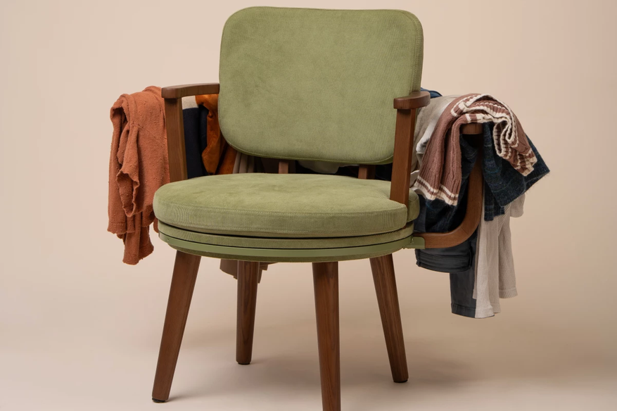 Гирц обращает внимание на важный нюанс: одежда, надетая один раз, часто не пачкается настолько, чтобы отправляться в стирку. Если дать вещам проветриться, они дольше сохранят вид и форму. Кресло помогает не сваливать всё в кучу, а хранить аккуратно — и при этом не захламлять комнату.