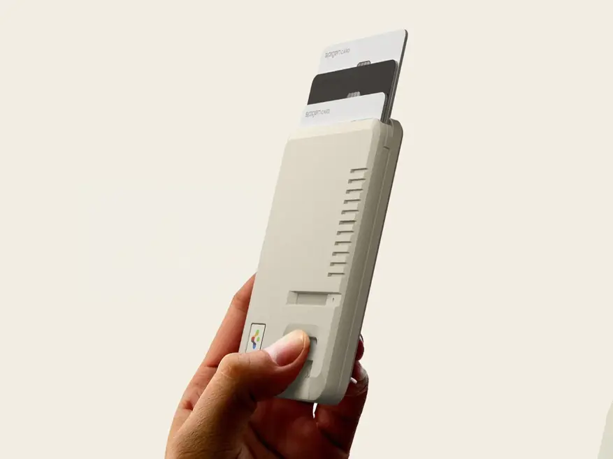 Устройство вмещает до трех пластиковых карт. Для удобства извлечения карт предусмотрено углубление, позволяющее выдвигать их нажатием большого пальца. На задней панели установлена силиконовая накладка, предотвращающая скольжение в кармане и при креплении к телефону.