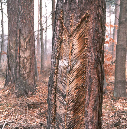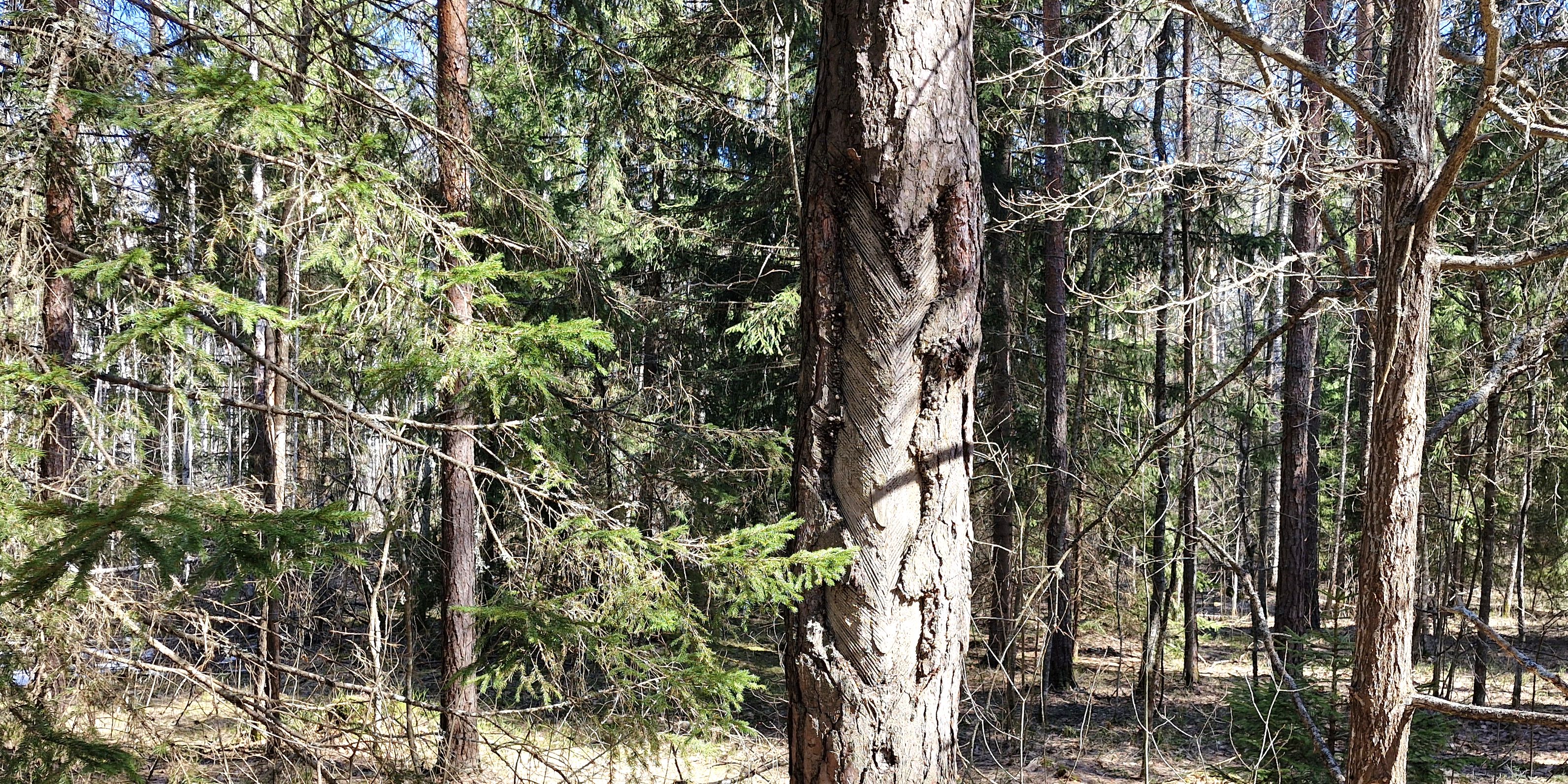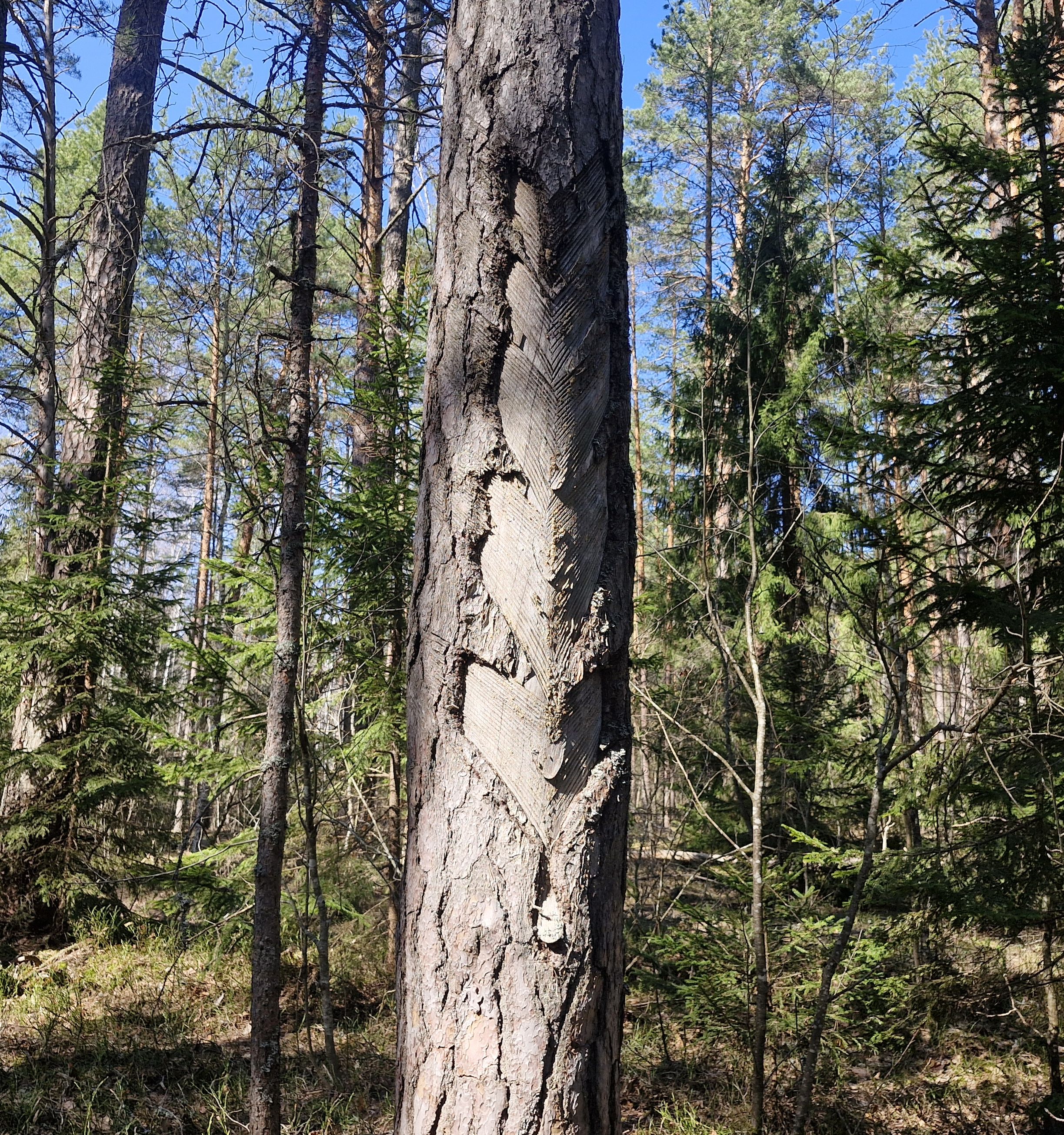 Прогуливаясь по сосновому лесу или собирая грибы, ягоды вы, возможно, замечали странные отметины на стволах взрослых деревьев V- образные надрезы в виде зарубок, иногда их называют рунами. И нередко рядом на земле можно увидеть металлические воронки, а некоторые из них закреплены на длинных деревянных шестах. Эти «символы» не являются следами мистических ритуалов или тайных знаков, это и не следы когтей зверей: они связаны с давним и практичным процессом подсочкой. Что это? — Давайте разбираться.