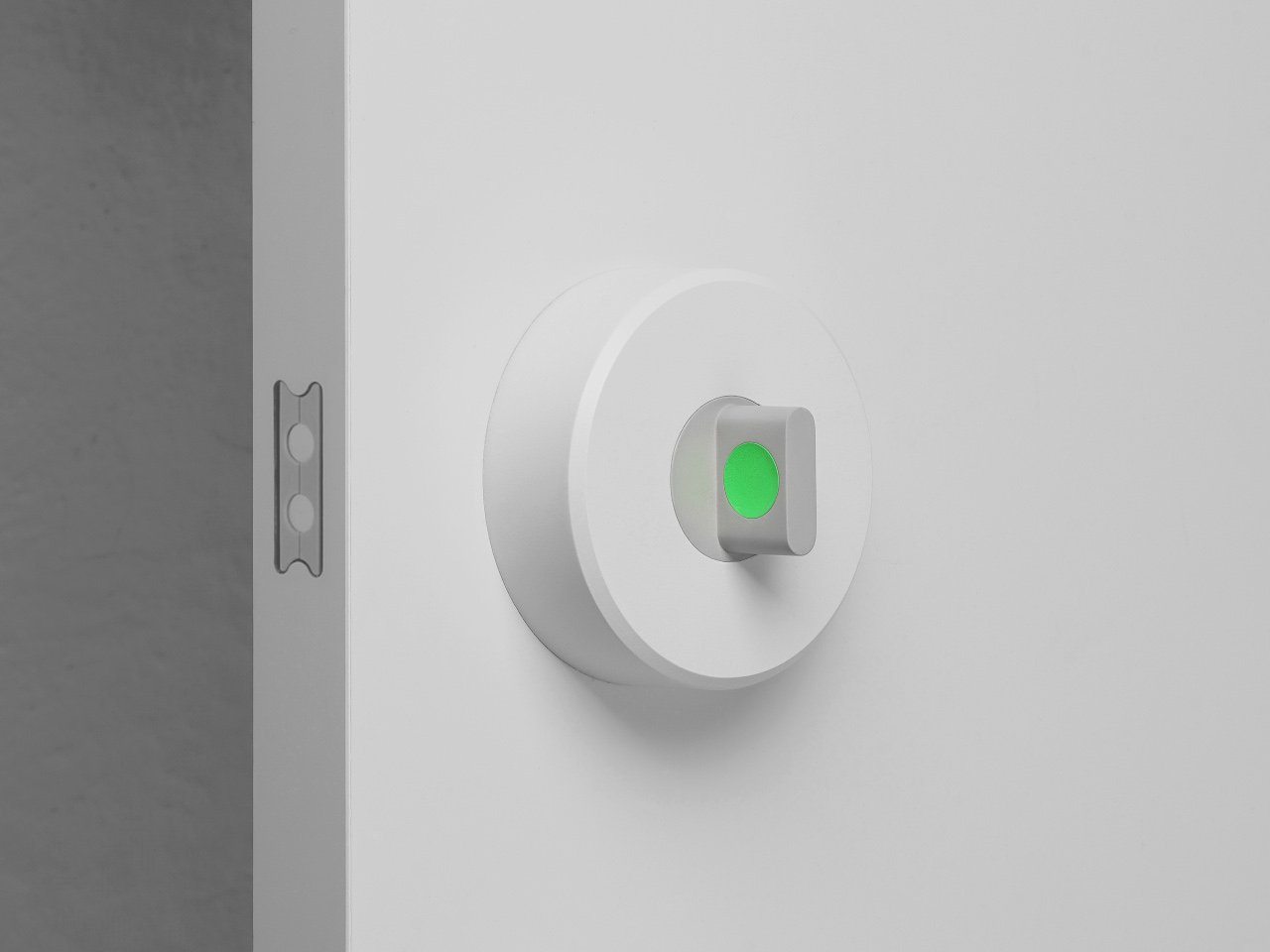 Умный дверной замок Fingerprint сочетает в себе биометрический сканер отпечатков пальцев и механический поворотный диск. После идентификации пользователя по отпечатку для открытия замка необходимо физически повернуть диск. Устройство монтируется на стену и оснащено зелёной световой индикацией состояния.