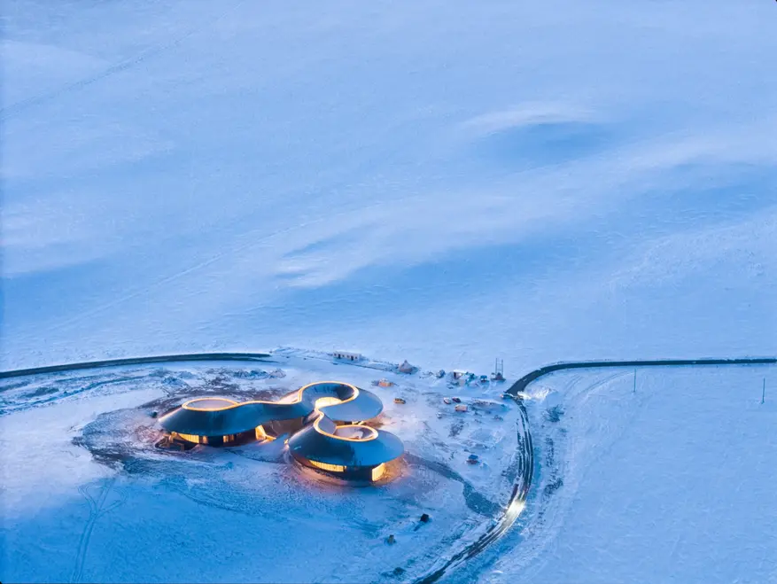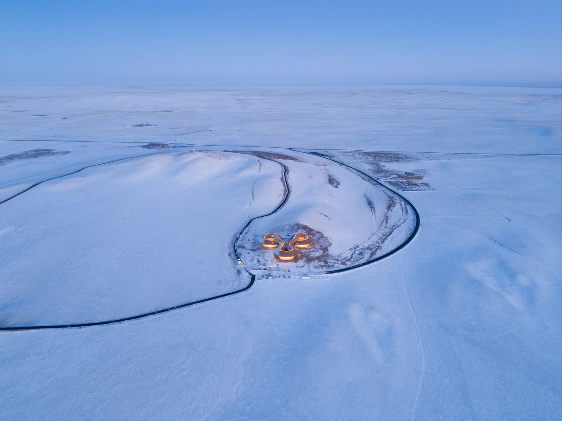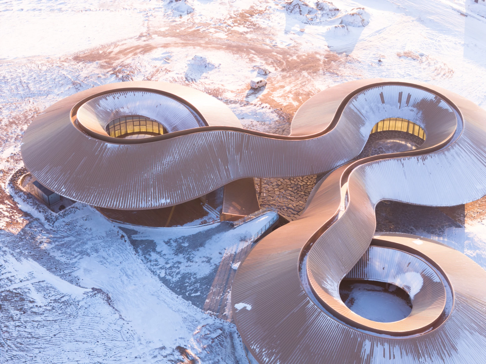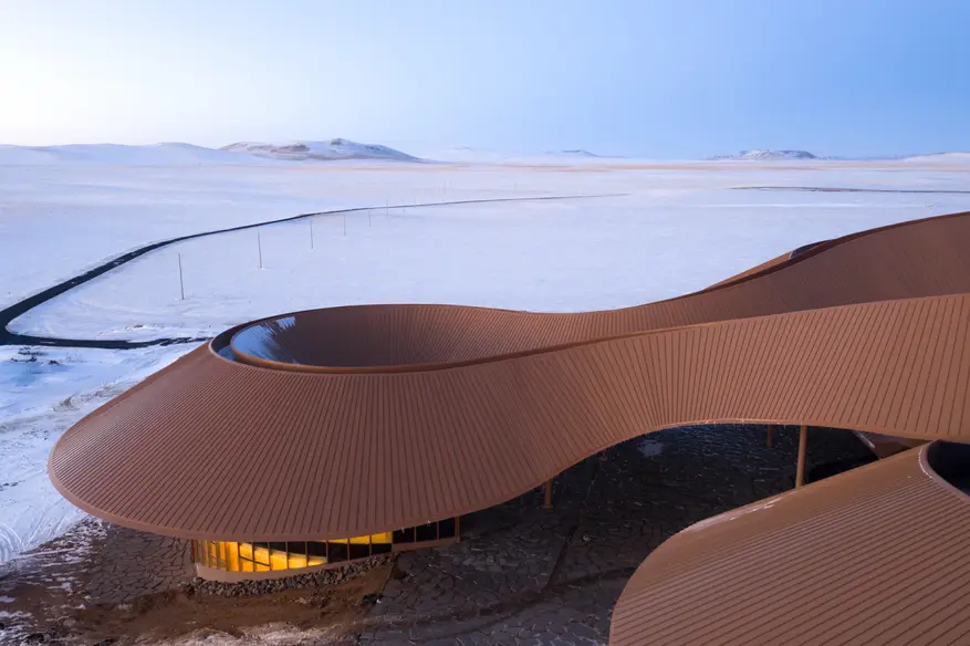 Архитектурное бюро PLAT ASIA завершило строительство туристического центра Volcano-In в районе Байинкулун во Внутренней Монголии, Китай. Объект входит в состав туристического комплекса «Степь и вулканы» и расположен на территории вулканического плато возрастом около 150 000 лет со 100 древними кратерами.