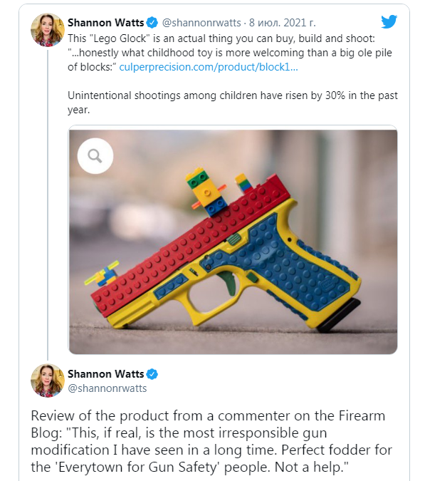 Производитель оружия, компания Culper Precision в США разработала пистолет, очень напоминающий игрушку из конструктора LEGO. Это вызвало большой скандал.