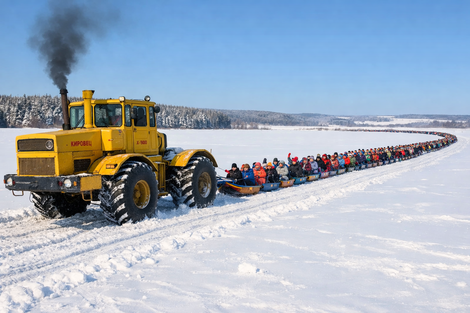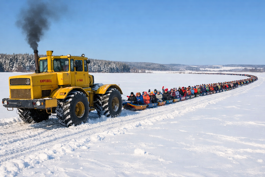 На одном из традиционных зимних праздников в федеральной земле Брандербург трактор 1960-х годов К-700 превратили в главное развлечение всех присутствующих.