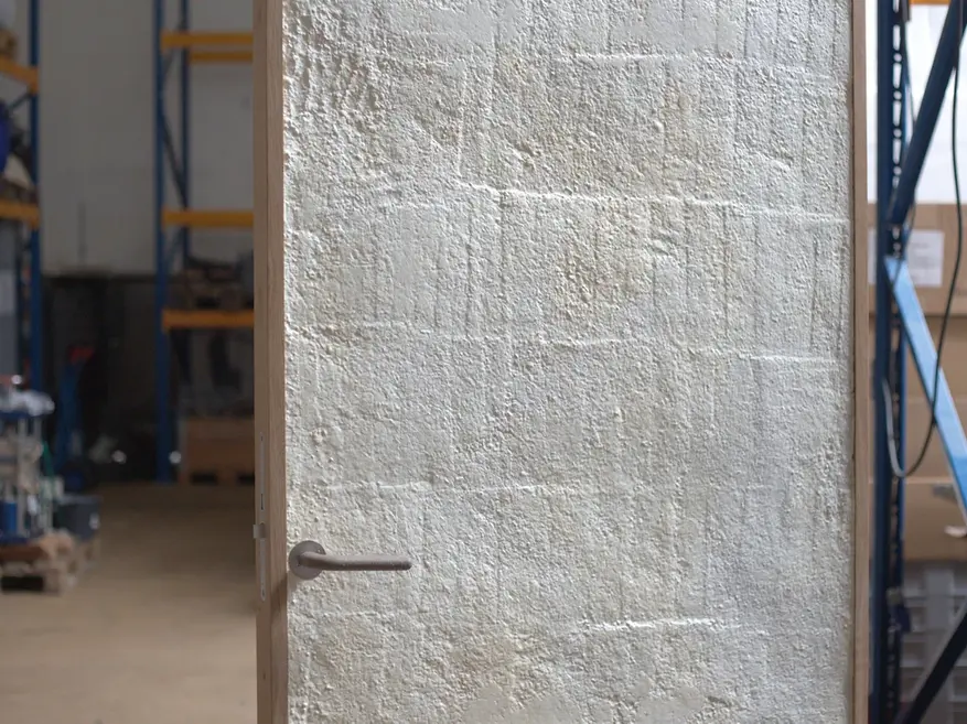 Цвет и текстура поверхности двери формируются в процессе выращивания без дополнительной обработки. Прототип имеет гладкую поверхность, но материал допускает изменение оттенка и нанесение глиняного покрытия. Биологический слой, формирующийся в процессе выращивания, укрепляет конструкцию и повышает ее огнестойкость без использования клея.