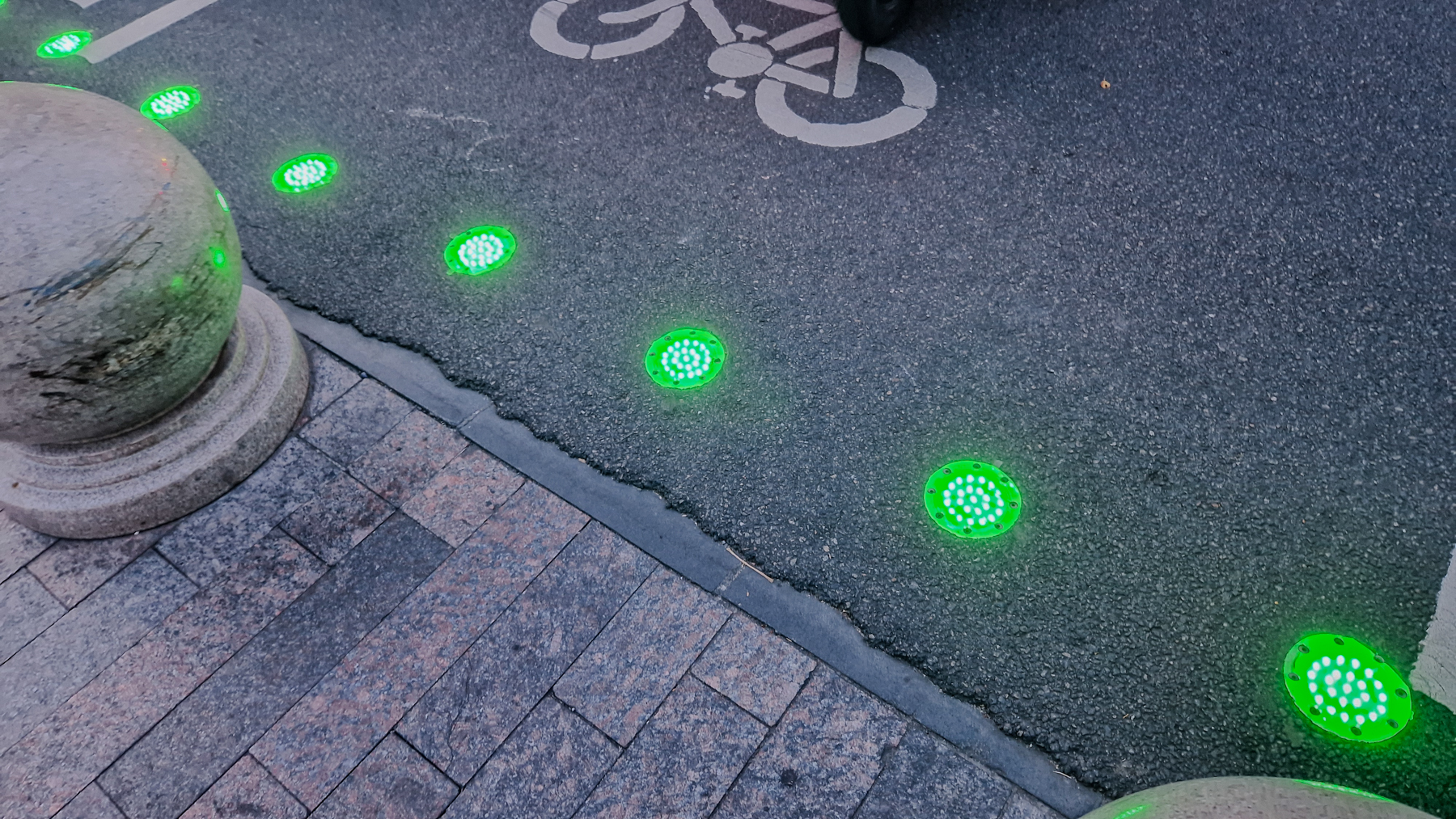 Вот так выглядят эти светофоры вблизи. По сути это обычные Led фонари, как и в обычных светофорах. Просто прикрыты более крепким стеклом или пластиком (извините, я не стал щупать, чем прикрыты эти фонари).