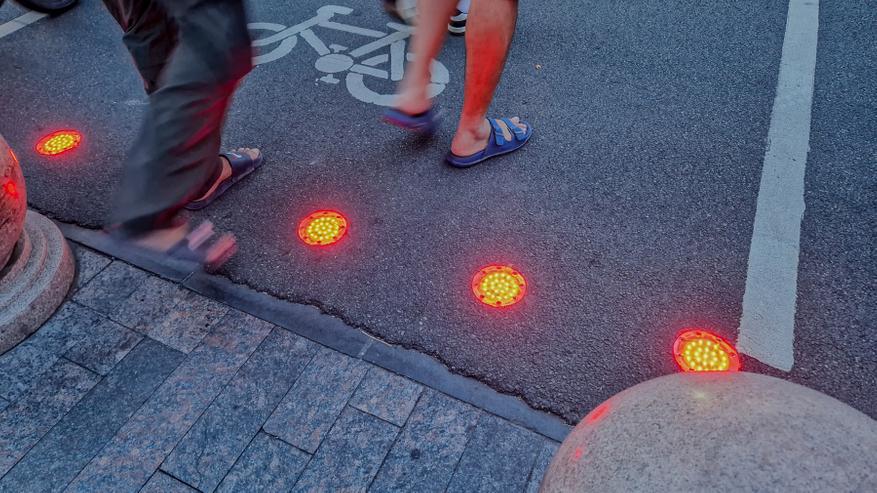 Поэтому власти решили добавить светофоры под ноги, чтобы даже когда человек смотрит в телефон, он видел, что сейчас горит красный цвет и идти по пешеходному переходу нельзя.