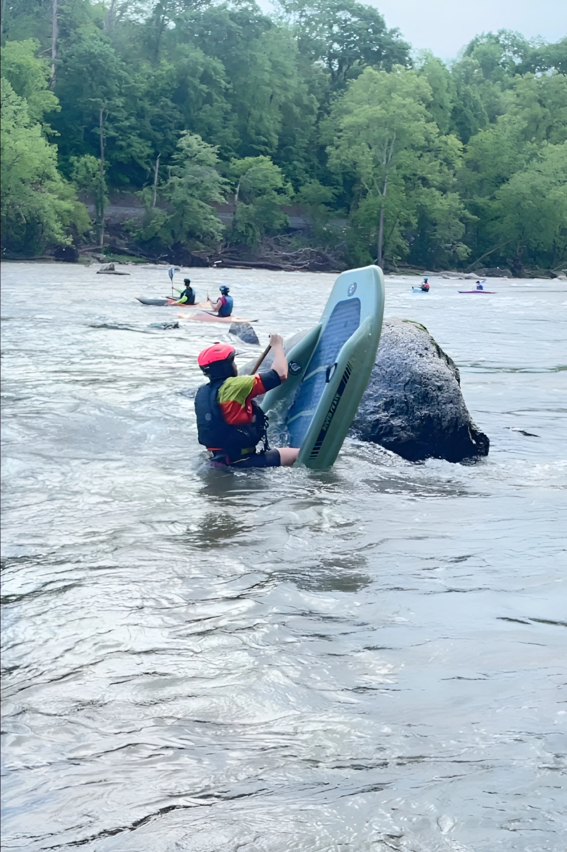 Гребец из Северной Каролины Дэвид Миллер разработал надувную доску для сапсерфинга Riverskate, которая отличается от традиционных моделей способностью намеренно погружаться носом и кормой под воду для выполнения акробатических маневров.