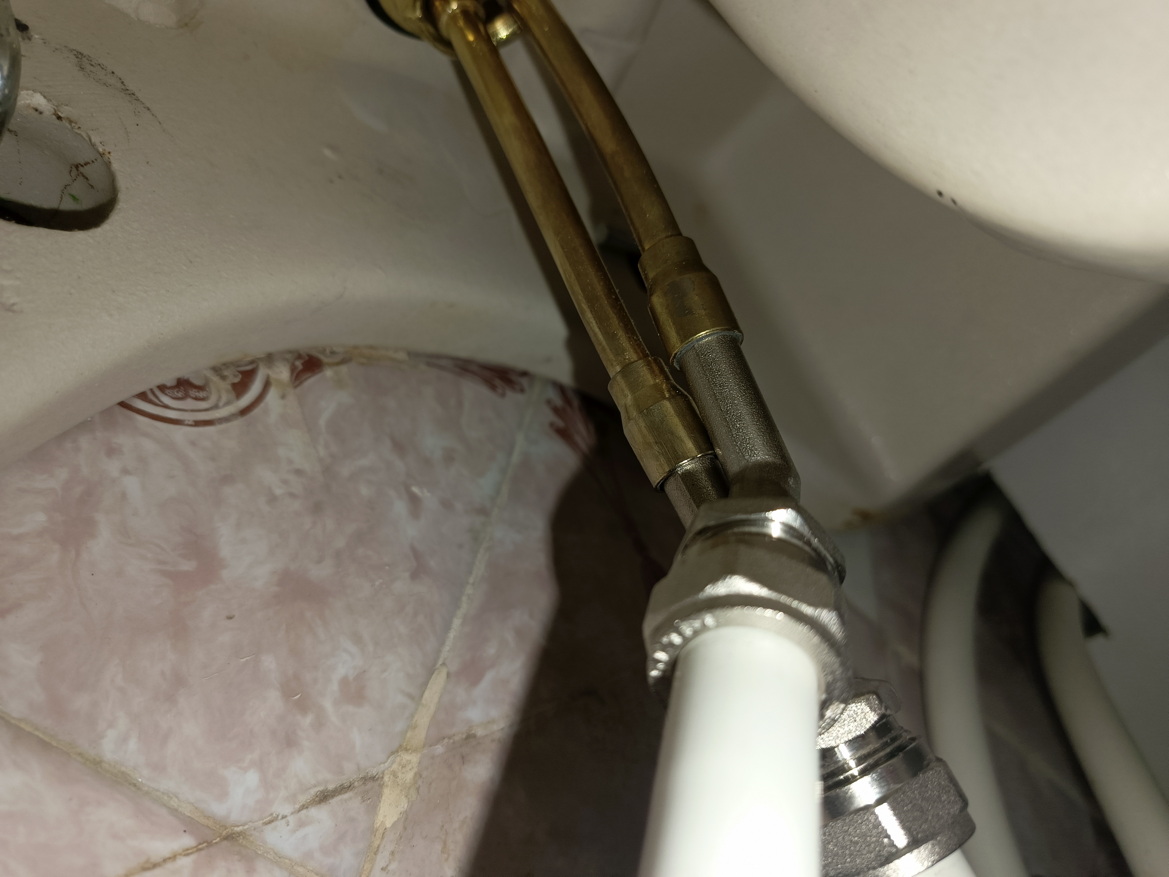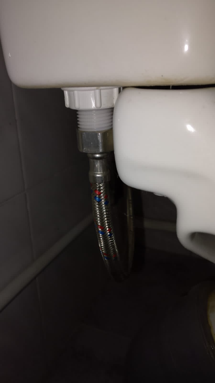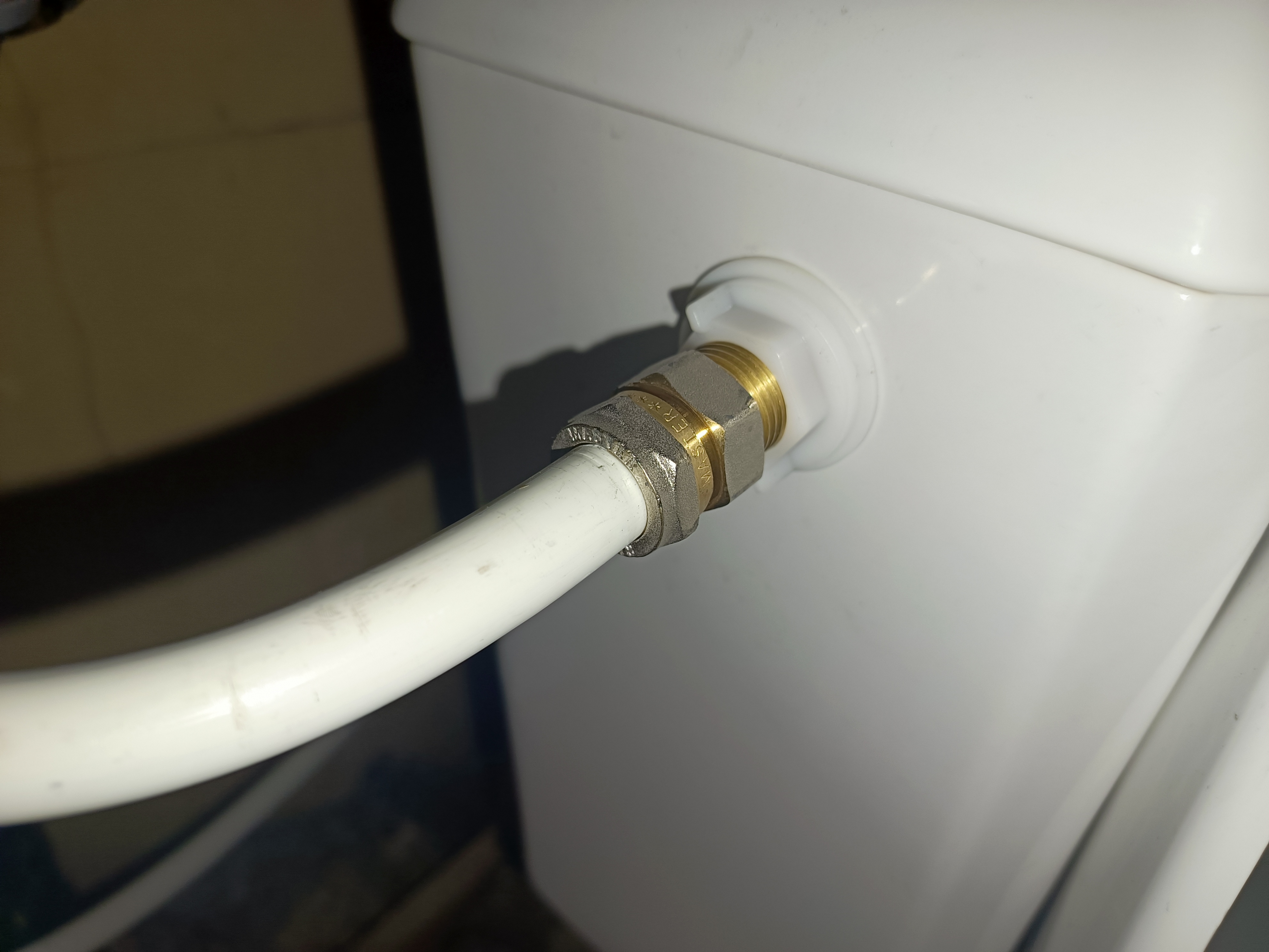 При подключении рекомендуется соединение металл-металл, а не металл-пластик. Поэтому на примере унитаза пришлось заменить стандартный водяной клапан унитаза с пластиковым выводом на новый с латуневым выходом.