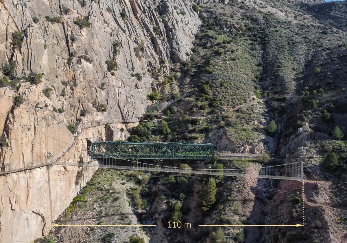 Объявлено о строительстве самого длинного пешеходного подвесного моста в Испании в ущелье Каминито-дель-Рей в провинции Малага. Длина сооружения составит 110 метров, а высота над землей — 50 метров. Место, выбранное для этой новой инфраструктуры, находится недалеко от существующего железного железнодорожного моста и туннеля Эль-Чорро в Алоре. Строительство моста потребует использования вертолетов и инвестиций в размере около 1 250 000 евро. Власти провинции ожидают, что это 110-метровое сооружение откроется для посетителей в ноябре.