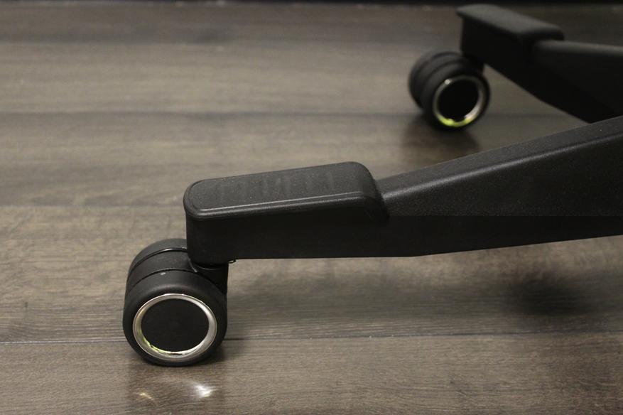 В использовании кресло показывает себя хорошо. Колеса диаметром 60 мм плавно и тихо катаются по разным покрытиям (ковер, ламинат) и не оставляют следов. Пластиковые площадки для ног на основании — небольшая, но приятная деталь для смены позы.