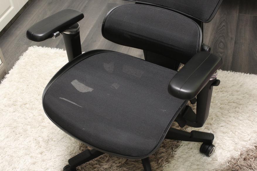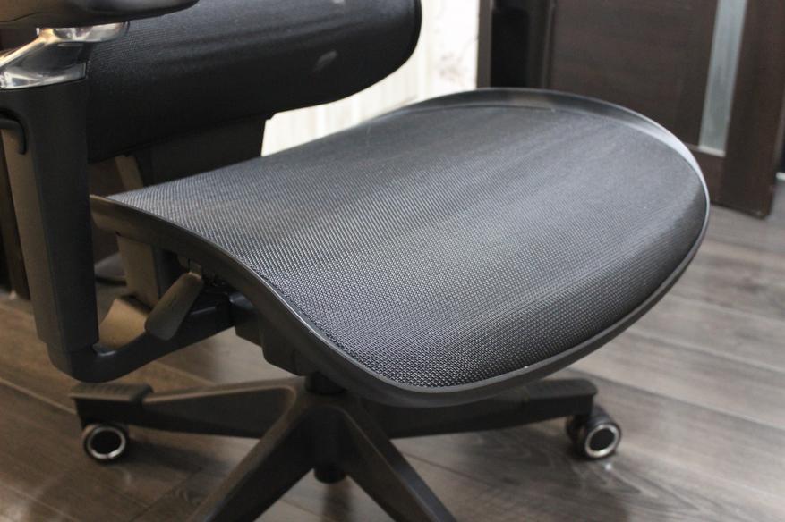 Главный элемент, который определяет комфорт, — это материал обивки. И сиденье, и спинка, и подголовник сделаны из прочной нейлоновой сетки особого плетения.
