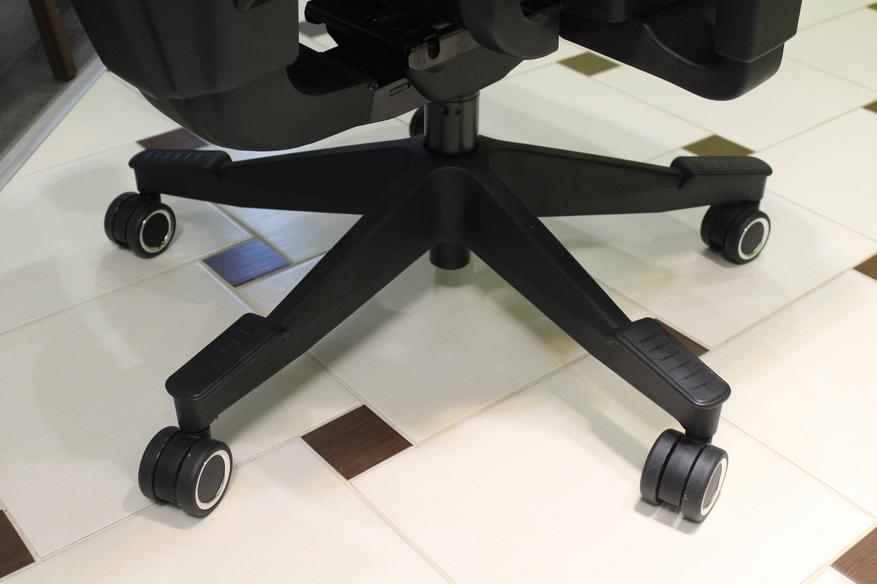 Еще один спорный момент для флагманской модели — основание (крестовина) сделано из литого нейлона, а не из металла. Производитель объясняет это уменьшением шума и веса. Нейлоновое основание действительно прочное и легко держит мои 100 кг (заявлено до 150 кг), но у некоторых пользователей его вид и ощущения могут вызывать ассоциации с более дешевыми моделями, а это не совсем сочетается с премиальным позиционированием кресла.