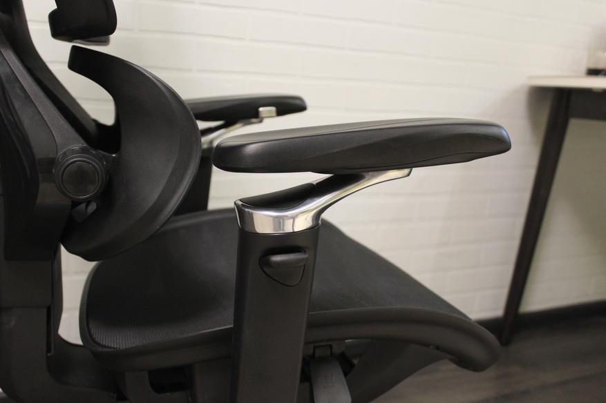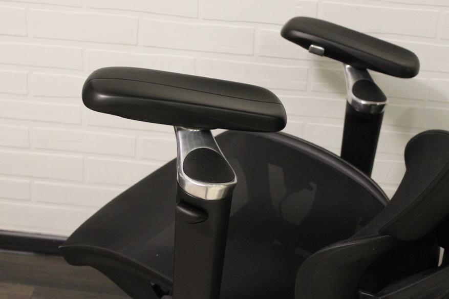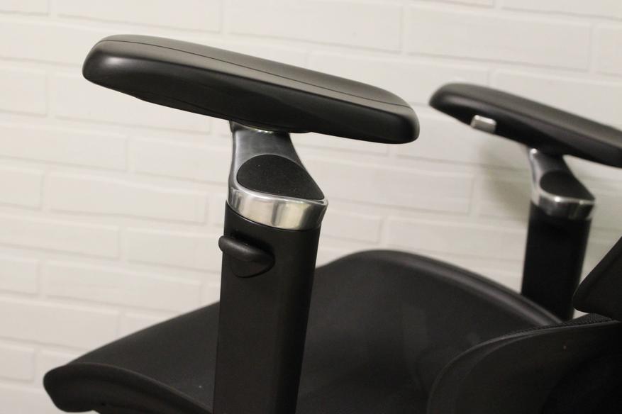«Визитная карточка» модели — это подлокотники необычной конструкции. Они состоят из трех соединенных частей, что дает им большую свободу движений. Подлокотники можно регулировать по высоте, сдвигать вперед-назад, разводить в стороны и, что самое необычное, вращать на 360 градусов. Фактически их можно поставить почти в любом положении: параллельно столу, под углом для поддержки при печати, развернуть в сторону или просто опустить. Такой уровень гибкости — большое преимущество. При этом сами подлокотники немного люфтят и издают звуки, если их потрясти. Но этого можно и не делать.
