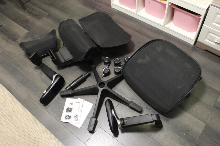 Кресло приезжает в большой и тяжелой коробке (вес более 23 кг). Учтите это при заказе доставки, особенно если нужно поднимать на этаж. Сборка продумана хорошо. Все детали надежно упакованы, крепеж рассортирован, в комплекте есть понятная инструкция и инструмент. Радует, что внутри очень много защитного материала, чтобы ничего не пострадало в пути.