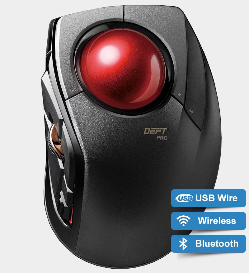 Ладонный трекбол, сочетающий проводное подключение, Bluetooth и 2.4 ГГц приёмник, что даёт гибкость выбора способа подключения. Основной шар выполнен крупнее, чем у базовой модели DEFT, и перемещается с хорошей точностью, а 8 физических кнопок и колесо прокрутки с наклоном можно настроить под свои задачи. Кнопка смены DPI позволяет быстро регулировать чувствительность сенсора в диапазоне до примерно 1500 DPI, а эргономичная форма уменьшает нагрузку при длительной работе. Эта модель получила смешанные отзывы по сборке и софту, но остаётся одной из немногих компактных трекболов с множеством функций и разнообразными вариантами подключения.