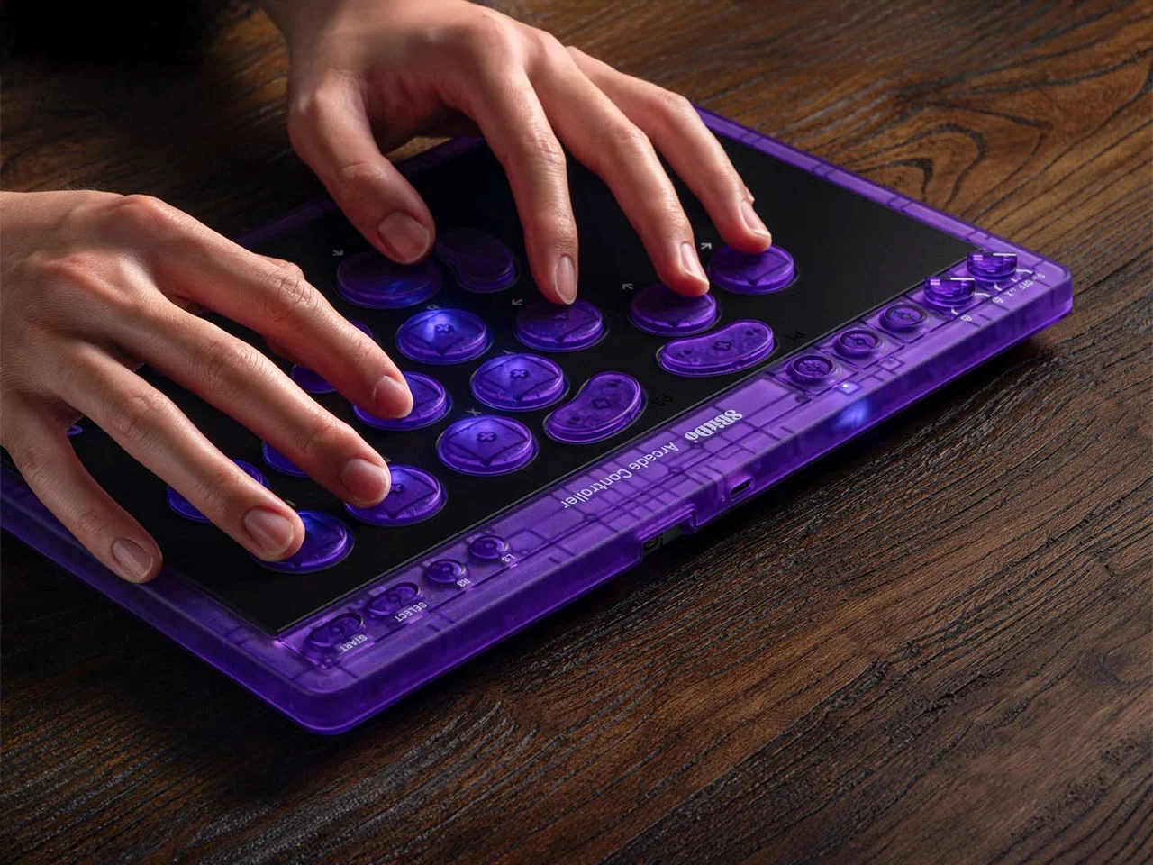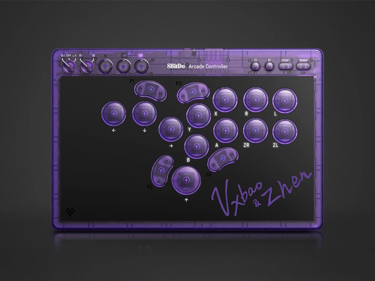 Компания 8BitDo анонсировала выпуск контроллера Arcade Controller Transparent Purple Signature Edition, созданного в партнёрстве с профессиональными игроками в файтинги Vxbao и Zhen. Устройство получило прозрачный фиолетовый корпус со встроенными подписями обоих киберспортсменов.