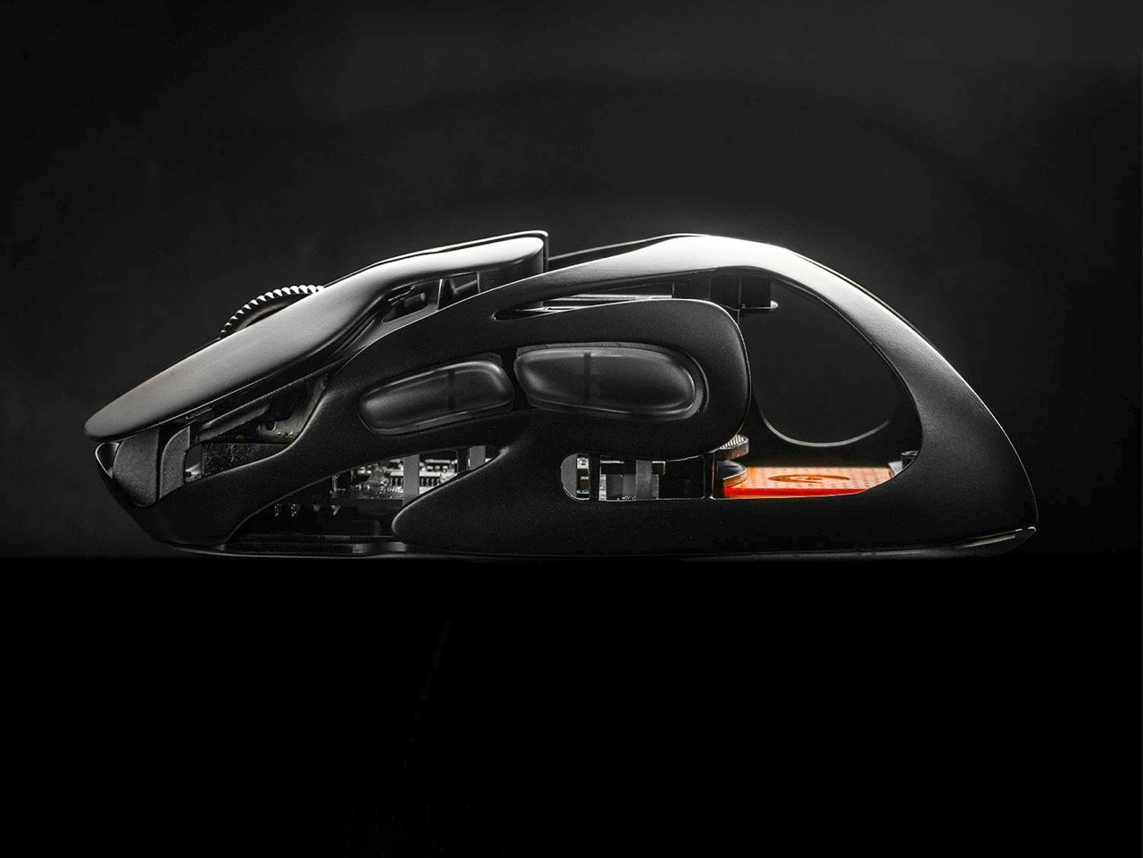 Техническое оснащение включает высокоточный сенсор PAW3950 с частотой опроса 8K Гц, обеспечивающий максимальную отзывчивость в игровых сценариях. Главной инновацией устройства стала запатентованная система питания: пользователь может извлечь разряженный аккумулятор через заднюю панель и заменить его на заряженный, не прерывая работу мыши и не отрывая её от поверхности стола.