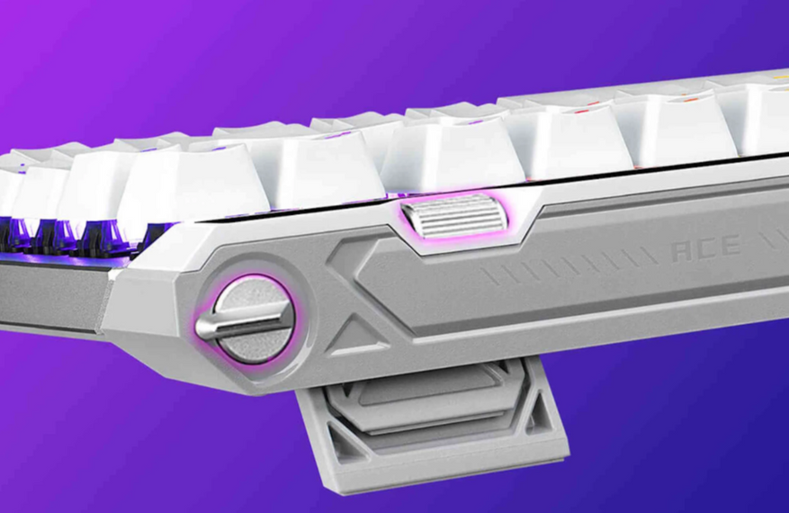 Верхняя и задняя панели корпуса ROG Falchion Ace 75 HE получили дополнительные элементы управления. В правом верхнем углу разместился поворотный энкодер для регулировки параметров и тумблер быстрого доступа к функциям. Конструкция также включает многофункциональную кнопку и тачпад для расширенного управления настройками, включая управление воспроизведением медиафайлов.