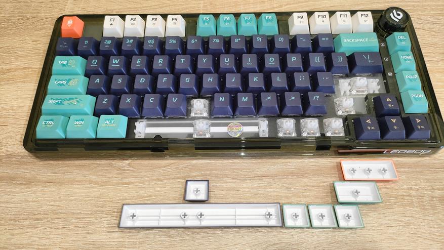| Переключатели | Leobog Ice Crystal: линейный механический тип, усилие 35+-3 грамм до срабатывания и 48+-3 мм до упора, ход до срабатывания от 1,8+-0,3 мм до 3,6+-0,3 мм; смазаны с завода; горячая замена есть |