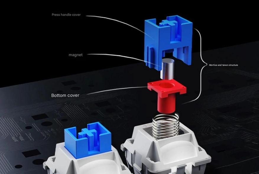 Клавиатура оснащена магнитными свитчами Lu Ban HiFi. В их основе лежит шипо-пазовая структура (mortise-and-tenon) и пластиковый ограничитель хода.