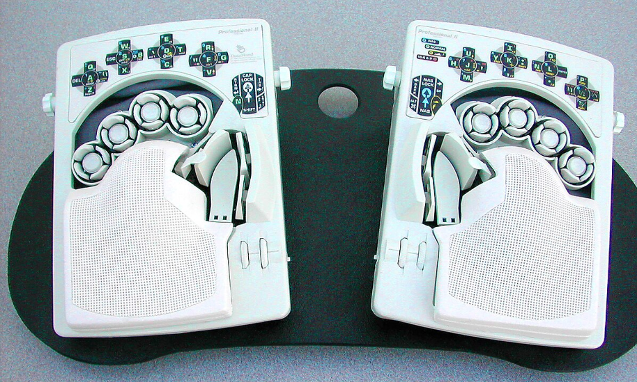 Конструкция позволяла полностью настроить угол наклона, высоту подставок и даже использовать устройство на коленях или вмонтированным в кресло. Идея была в том, чтобы минимизировать любые лишние движения — оставить только точную работу пальцев. Никакой нагрузки на запястья, предплечья или плечи. Теоретически — абсолютная эргономика.