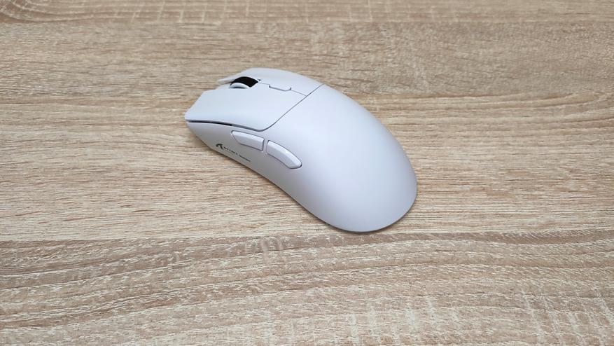 Кнопок всего шесть: две основные, две боковые, скролл, сверху кнопка переключения профилей DPI. Высота мыши почти 41 мм и боковые кнопки находятся заметно выше большого пальца, что исключает случайные нажатия на них. Как видно мышь рассчитана исключительно на правшей, так как кроме месторасположения боковых клавиш у неё есть заметный изгиб, а также форма со скосом на правую сторону.