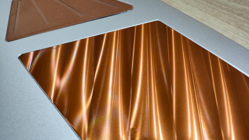 На дне красиво! В центре есть завораживающая вставка, которая переливается медным блеском. Возле нее, по бокам есть вставки, того же цвета, как и на фаске,