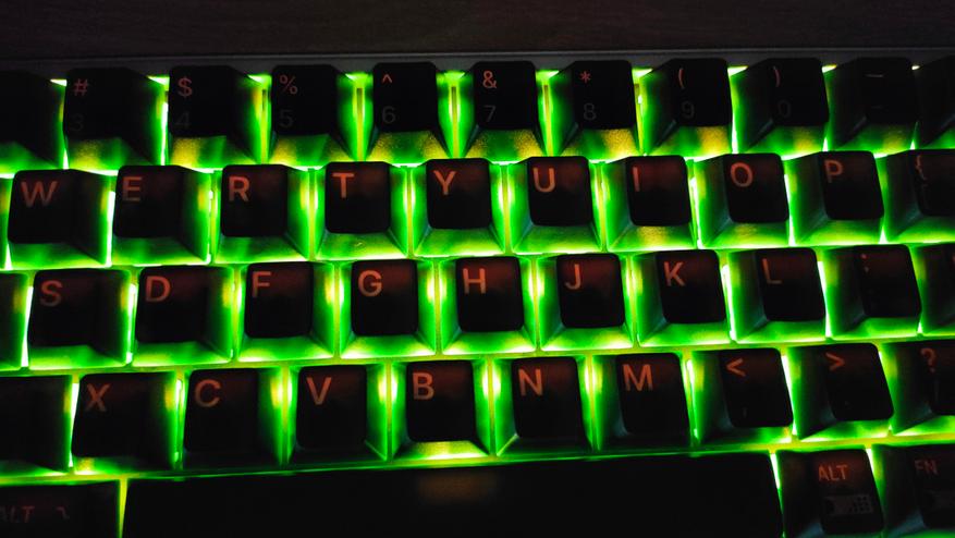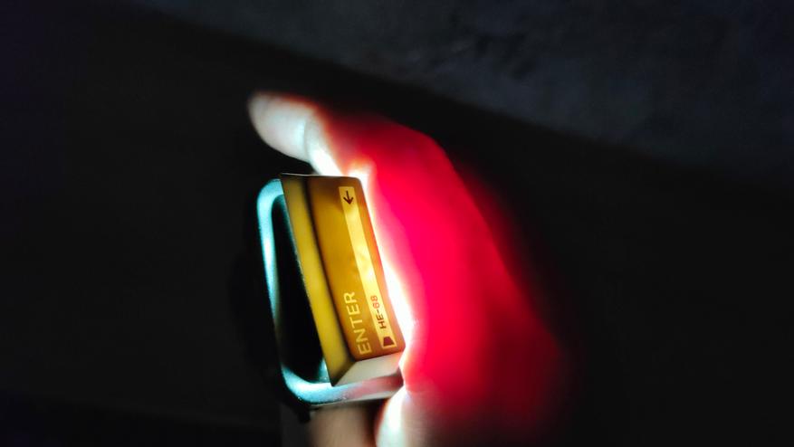 И тут двоякое чувство. Во-первых, PBT материал не пропускает свет, но здесь я увидел картину, которую продемонстрировал ранее — стенка колпачка пропускает свет, но, вероятно, не так, как все к этому привыкли,