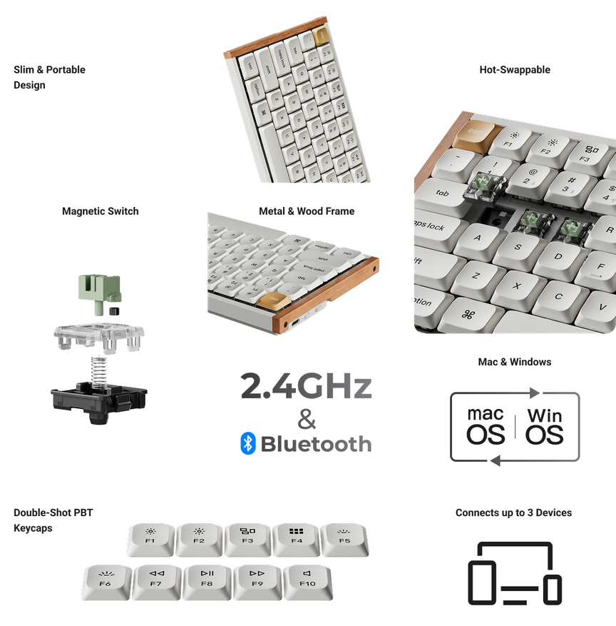 Keychron представила тонкие беспроводные клавиатуры K3 HE и K3 Ultra с деревянной отделкой