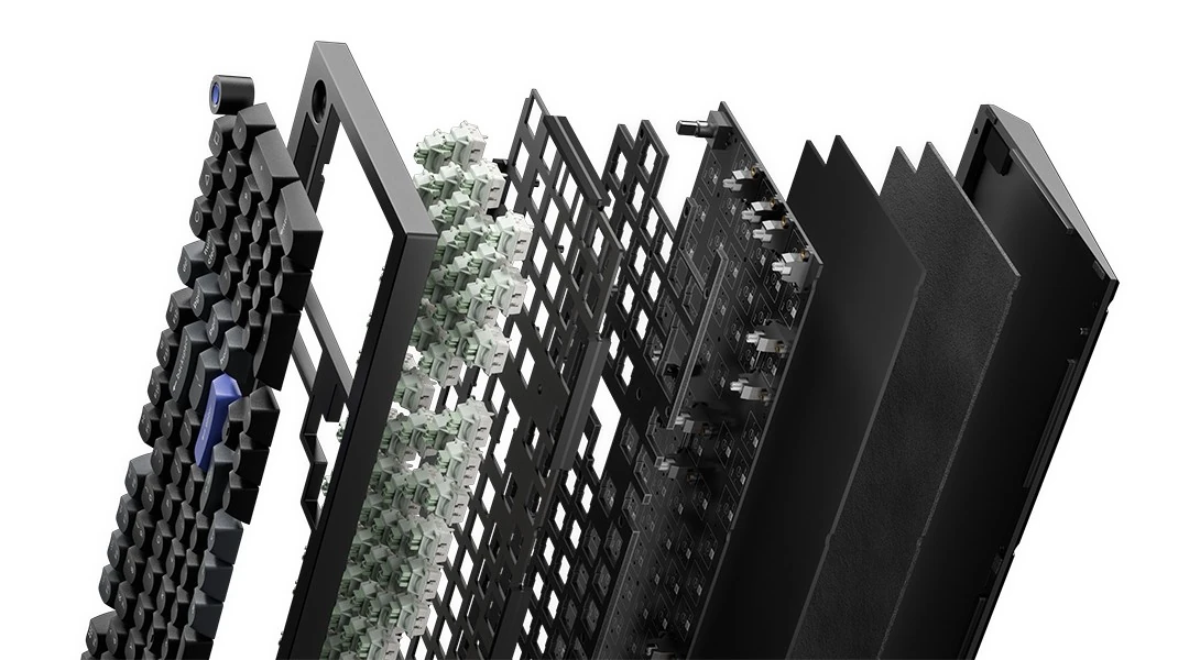 Печатная плата поддерживает горячую замену переключателей без пайки. Подсветка реализована через RGB-светодиоды с направлением свечения вниз. Колпачки клавиш изготовлены из PBT-пластика по технологии двойного литья под давлением в профиле OSA, что обеспечивает износостойкость легенд.