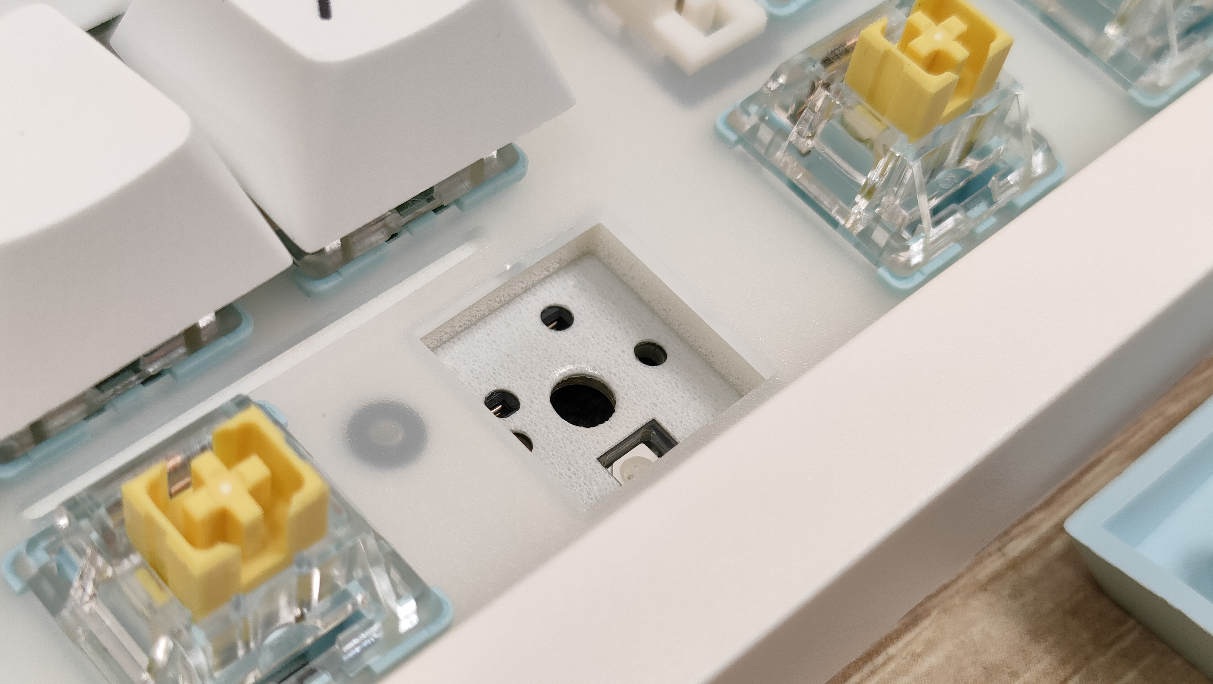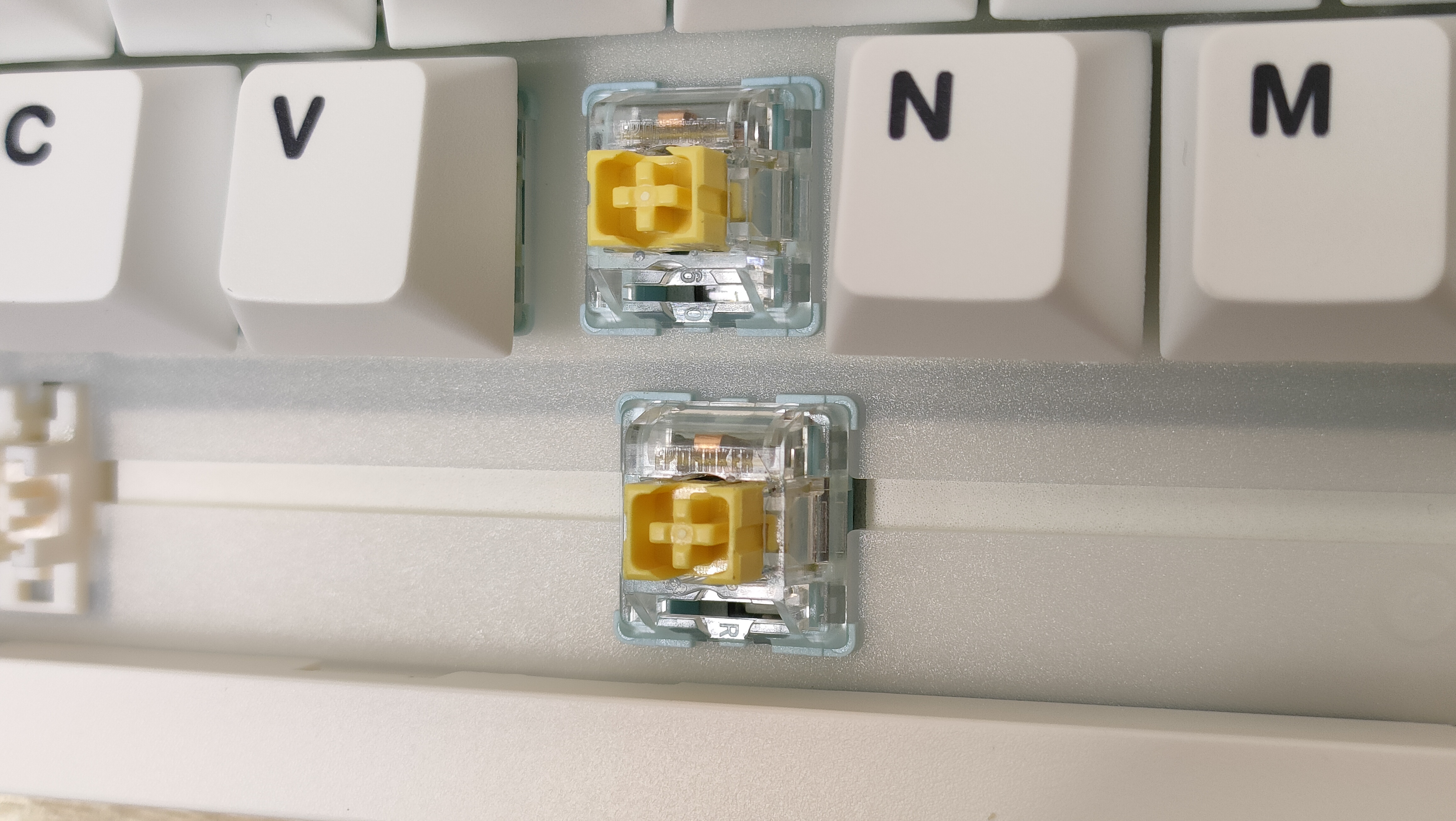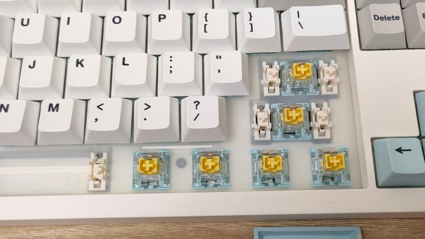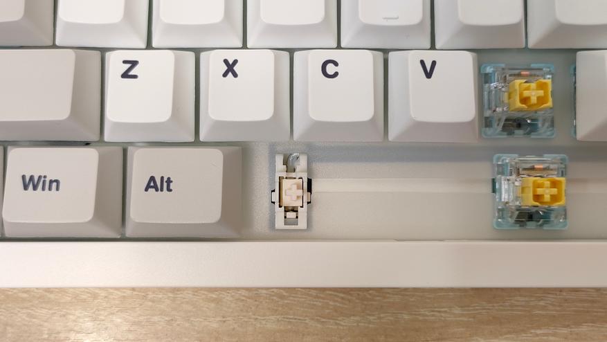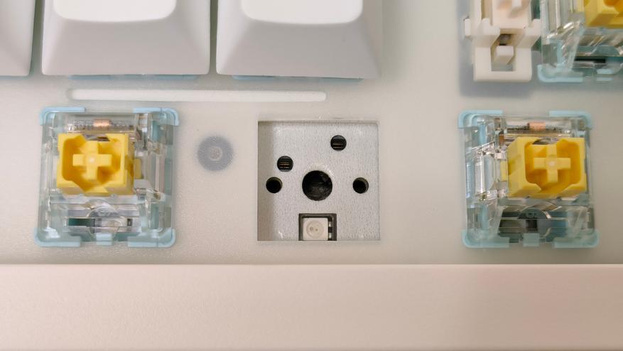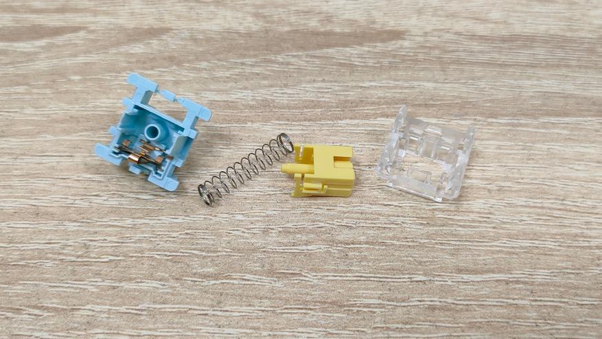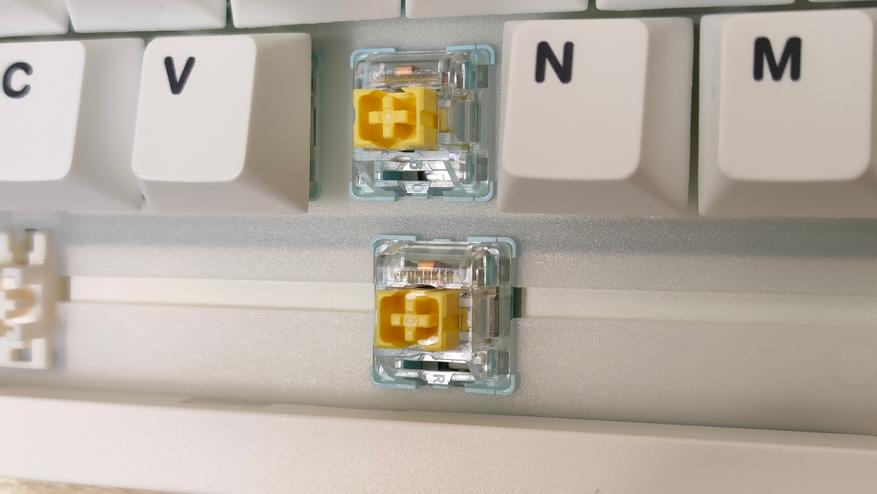 Используемые переключателем мне уже знакомы — Epomaker Sea Salt Silent v2, которые относятся к тихому типу. Параметры: 45+-5 г усилие до срабатывания, полный ход 3.5 мм, а до срабатывания 1.8 мм, смазаны, поддерживается горячая замена.