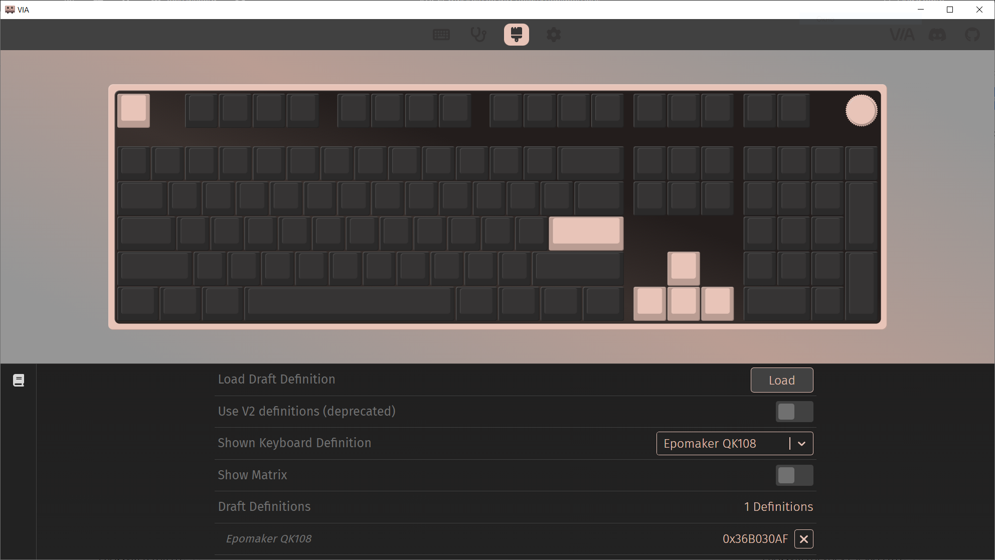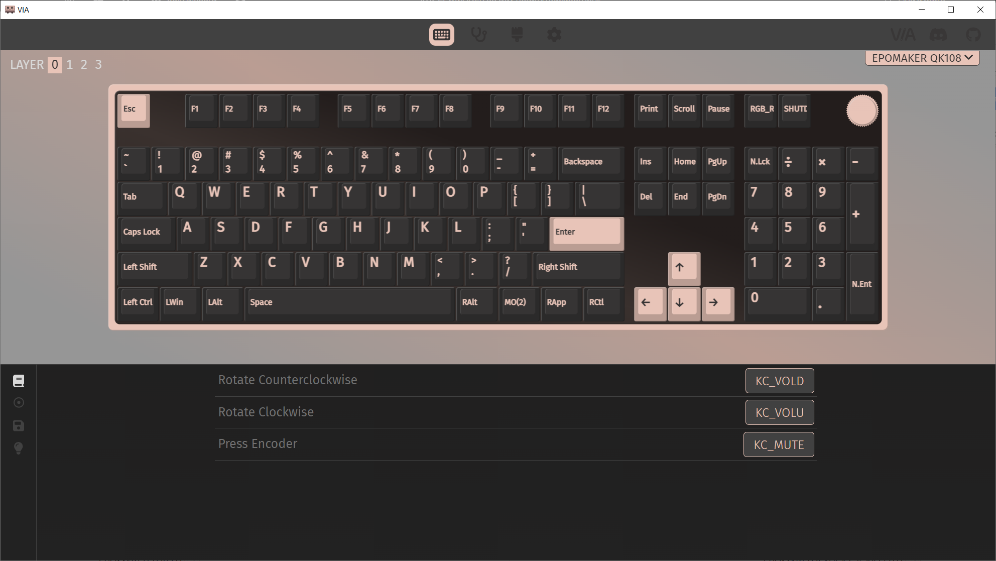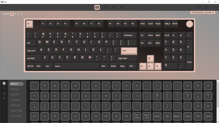 Профиль VIA можно без проблем скачать на сайте Epomaker и подгрузить его либо на сайт, либо на стационарно установленное ПО. В последнее время у меня веб-версия работает не очень хорошо, без внешних средств, поэтому, я установил себе локальную и там всё работает нормально, конечно же, после подгрузки json файла. Экран настраивается на другом онлайн ресурсе.