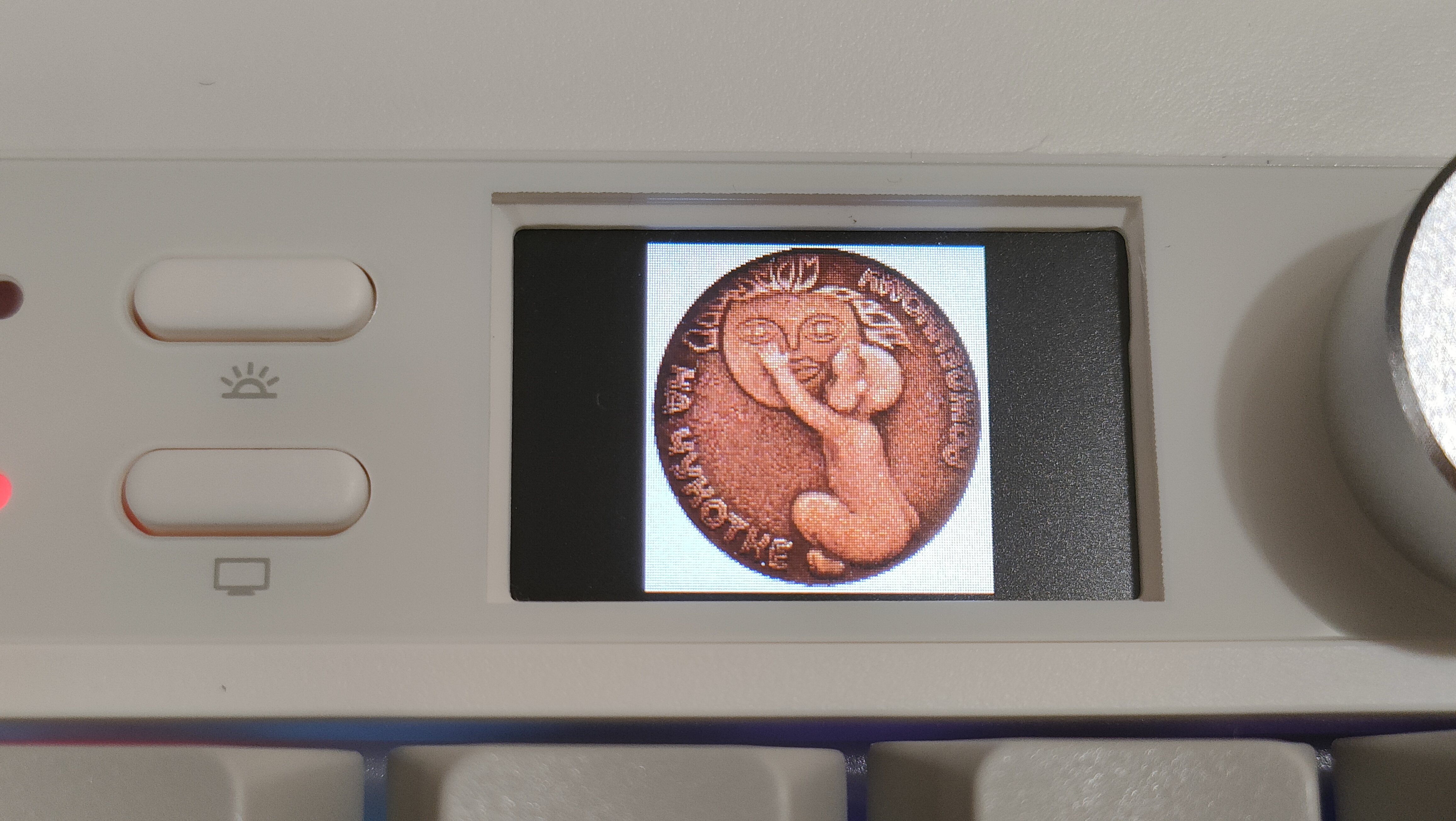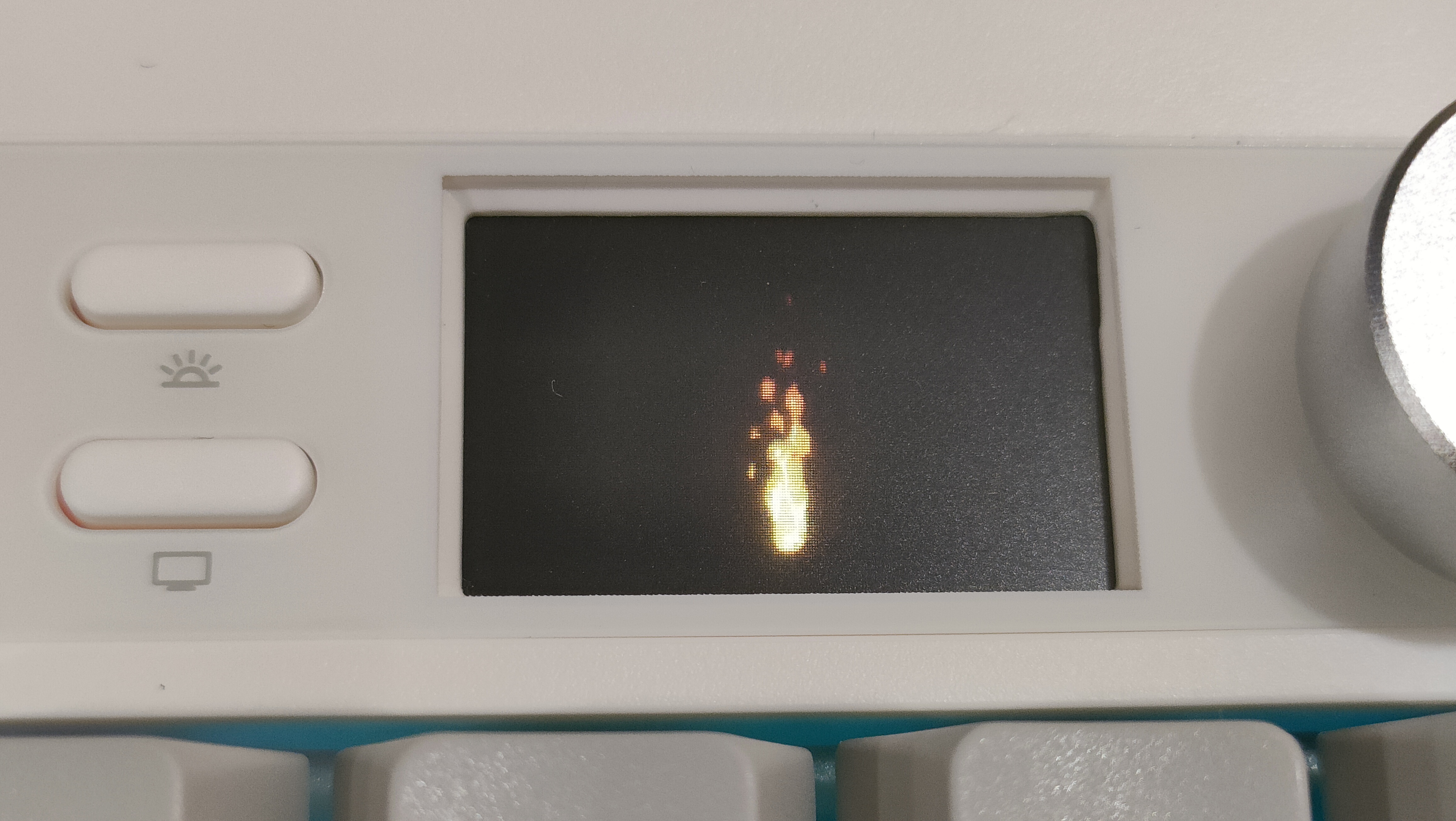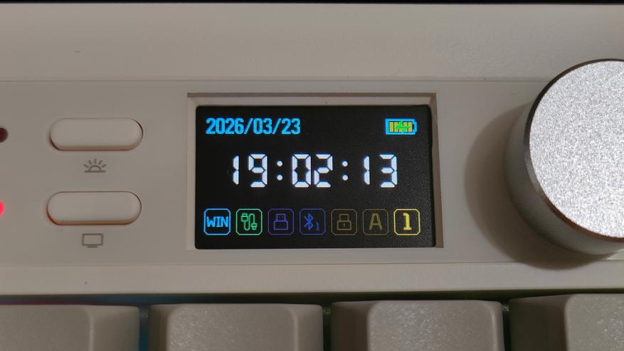 Экран самый простой, который можно было встретит и в других клавиатурах. Из полезного — часы под рукой и индикатор заряда.