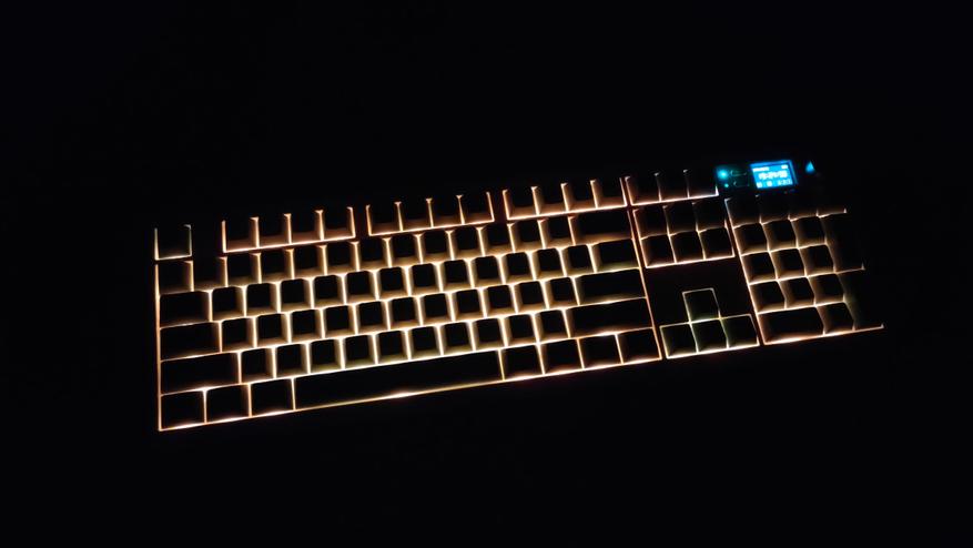 В силу обстоятельств, которые были описаны выше, она исключительно декоративная, то есть будет подсвечиваться только пространство между клавишами, так как материал из которого изготовлены колпачки не светопрозрачен.