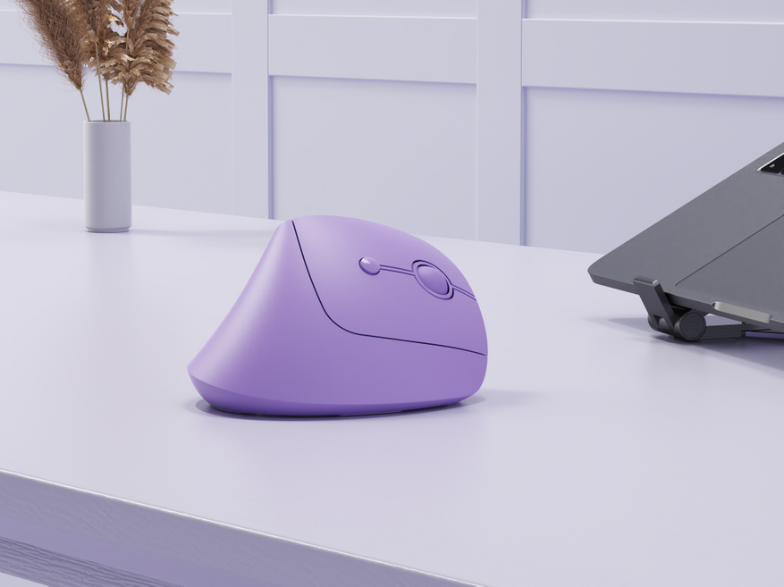Корпус мыши имеет вертикальный наклон под углом 52 градуса. По замыслу разработчиков, такая форма позволяет кисти пользователя находиться в положении, близком к естественному, что снижает нагрузку и напряжение в запястье при длительной работе. Габариты устройства составляют 111,7 x 76,2 x 68,5 мм, а вес — 83 грамма без элемента питания. Мышь доступна в двух цветовых вариантах: чёрном и фиолетовом.