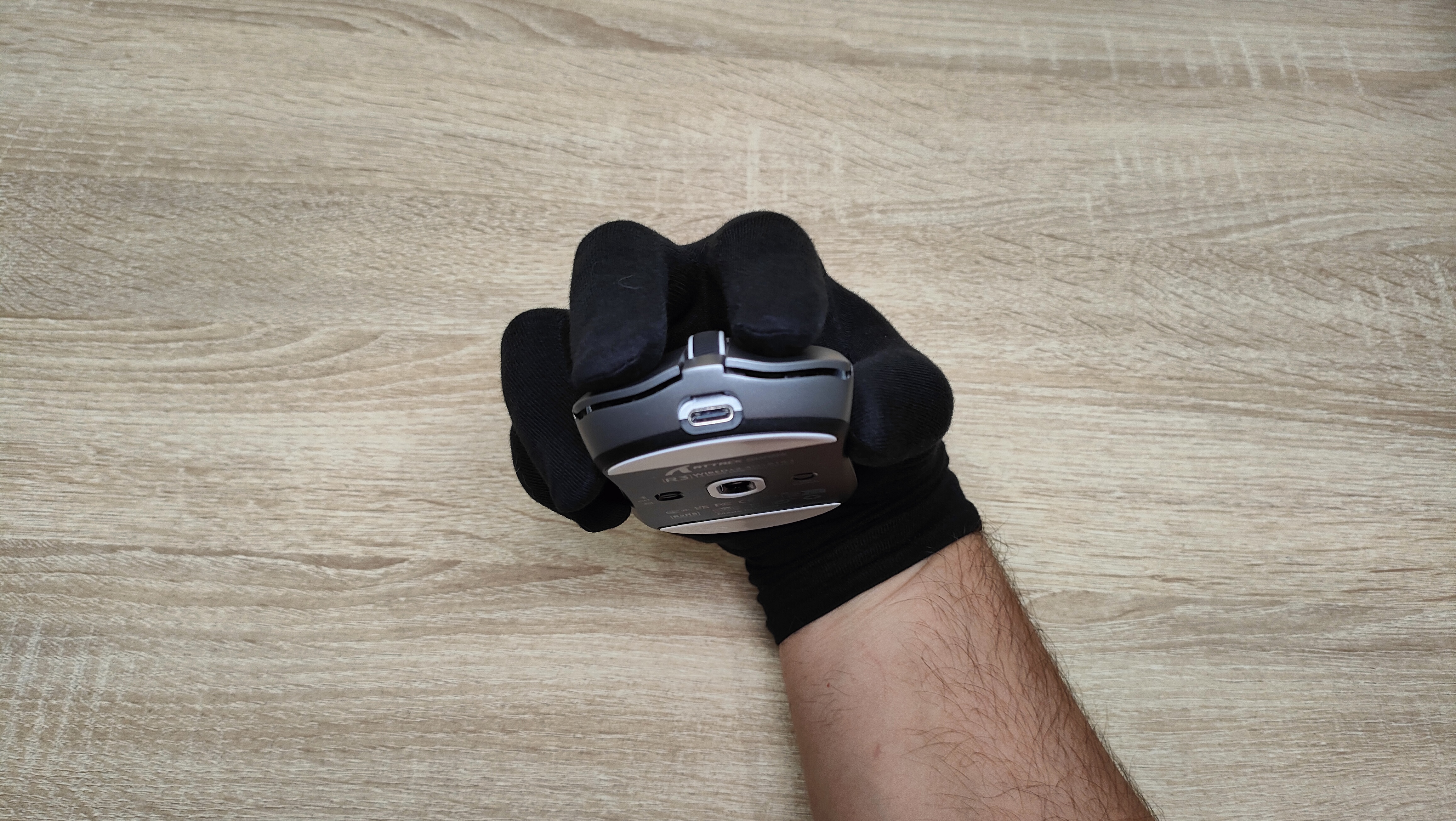 С подключением проблем нет никаких, только перед использованием Bluetooth нужно пройти стандартную процедуру сопряжения. Рука у меня шириной почти 9 см по костяшкам и 20 см от среднего пальца до запястья. В руке лежит мышь комфортно и не доставляет каких-либо неудобств или проблем. Однако, они могут появиться, если кисть у пользователя большая или например длинные пальцы. Всё-таки мыши сейчас делают в основном для каких-то среднестатистических кистей, они подходят и для маленьких, а вот для больших придётся подбирать.