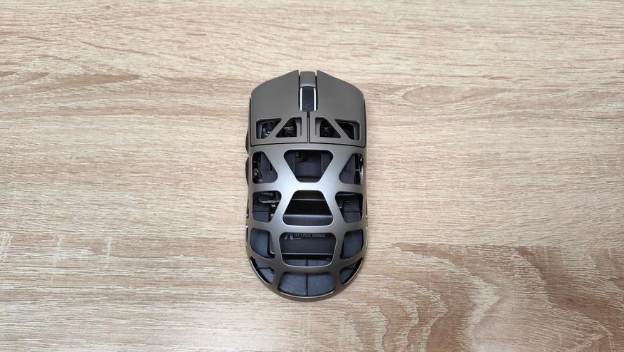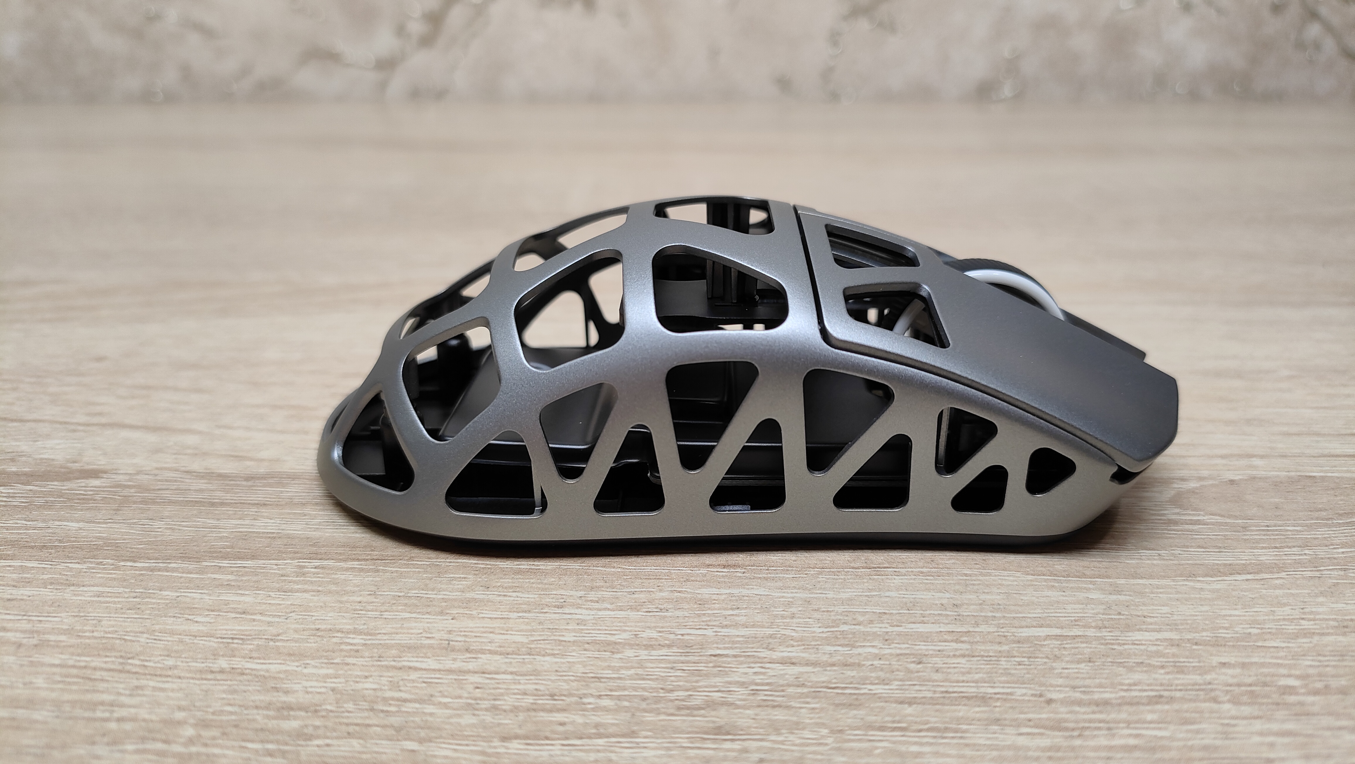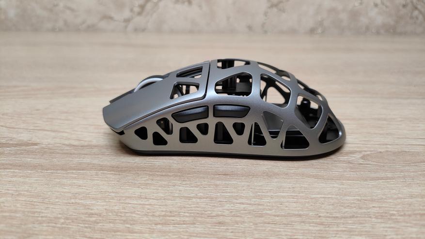 Внешний вид мыши очень агрессивный, не иначе, как игровой. Но так как дизайн всегда вечно любителя, кто-то скажет что это страшный сон трипофоба (не советую искать в картинках, что это). А ещё всегда найдутся сторонники того, что мышь всегда внутри будет достаточно грязной. В общем, все где-то немножко правы, но эффектного внешнего вида у мыши не отнять. Магниевый сплав также придаёт немного премиальности мыши, у неё благородный тёмно-серый металлический цвет и приглушённый блеск. Есть и другие цвета, например, сине-фиолетовый, напоминает цвета побежалости металла.