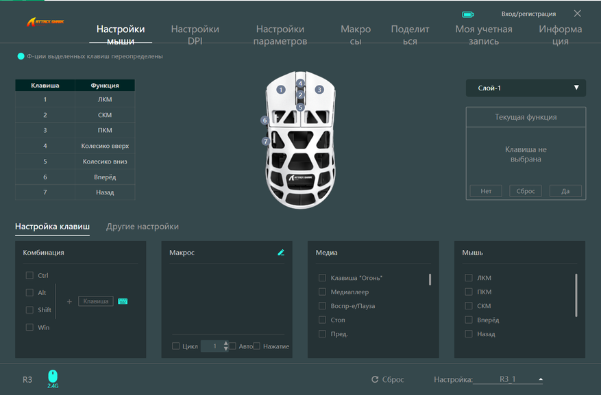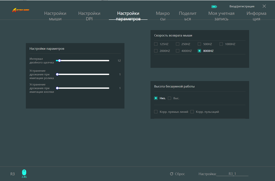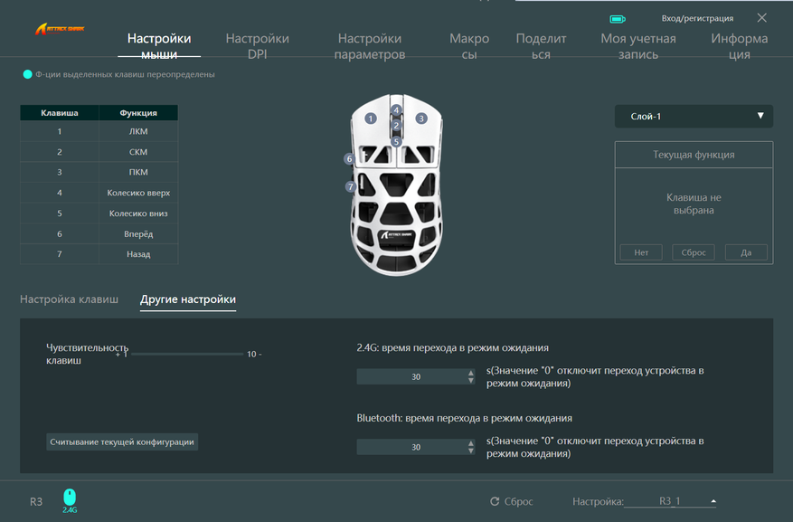 Программное обеспечение для мыши примерно такое же, как у сотен модель других мышек. Здесь абсолютно не нужно изобретать велосипед, а нужен стандартный набор возможностей, который отработан годами. Здесь всё это есть и работает, в том числе по радиоканалу.