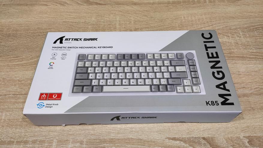 Attack Shark K85 — недорогая клавиатура (для образца с магнитными переключателями), которая снизила планку стоимости и позволила бОльшее количество людей познакомиться с новинками. Даже если не брать во внимание саму фишку магнитных переключателей, то остается вполне неплохая и ухоженная клавиатура, которая не раздражает своей работой, звоном
