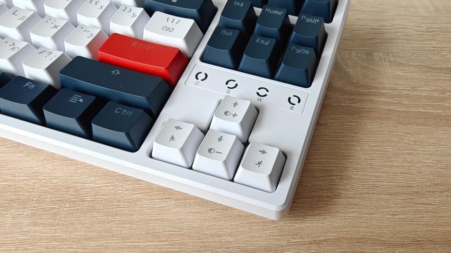 Стоит отметить, что клавиатура обладает безошибочным определением нажатий и обрабатываются буквально все нажатия по NKRO 100%. Бесшумной её не назвать, она гарантированно наполнит комнату звуком печатной машинки.