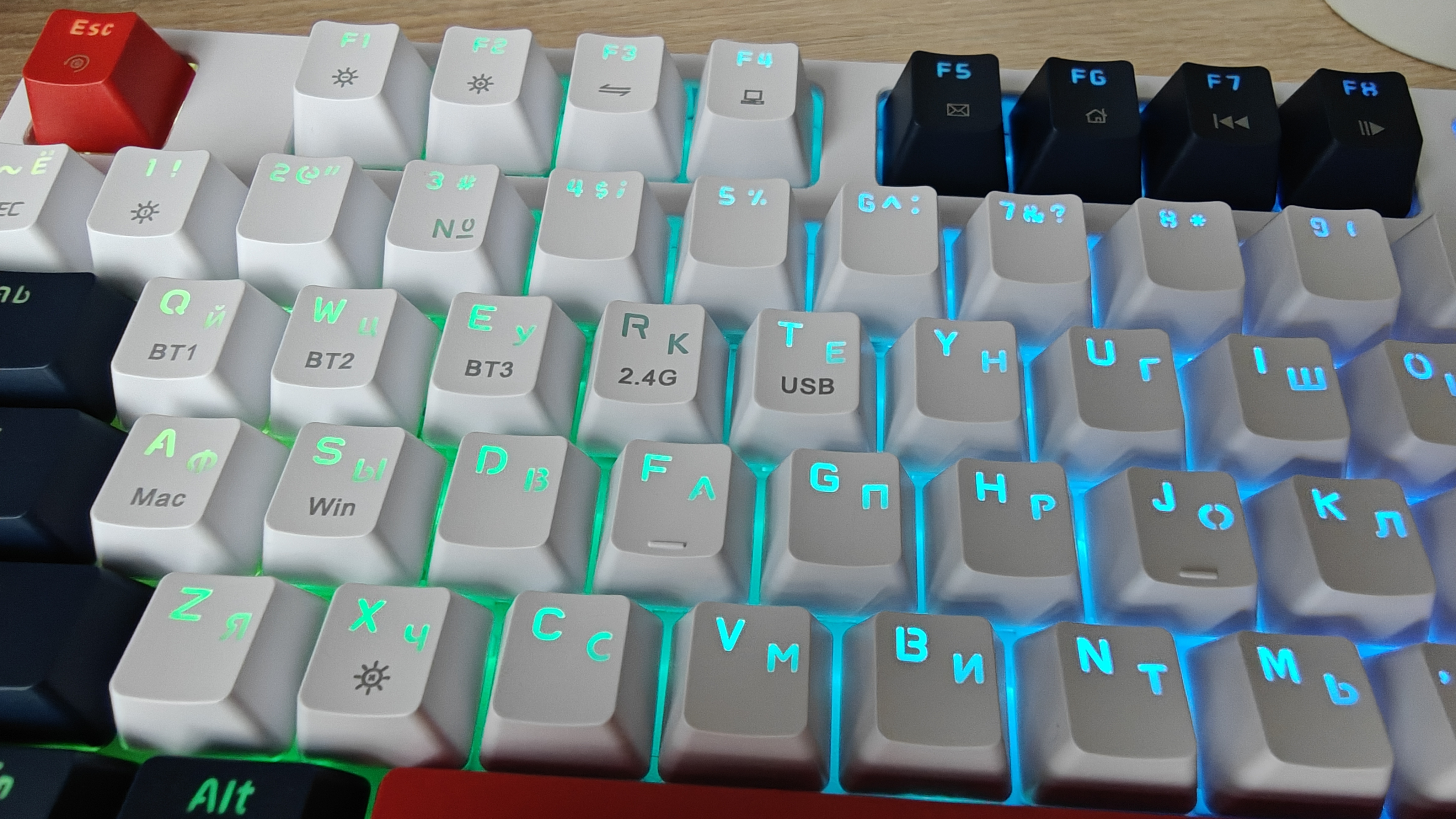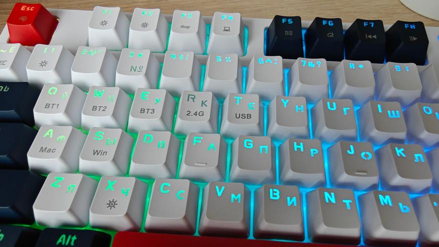 Подключение возможно по проводу, можно подключить ПК к клавиатуре через Bluetooth или вставить передатчик 2.4ГГц. Кнопка Win блокируется, что оценят игроки, которых сворачивание игры во время активных условий раздражают больше всех.
